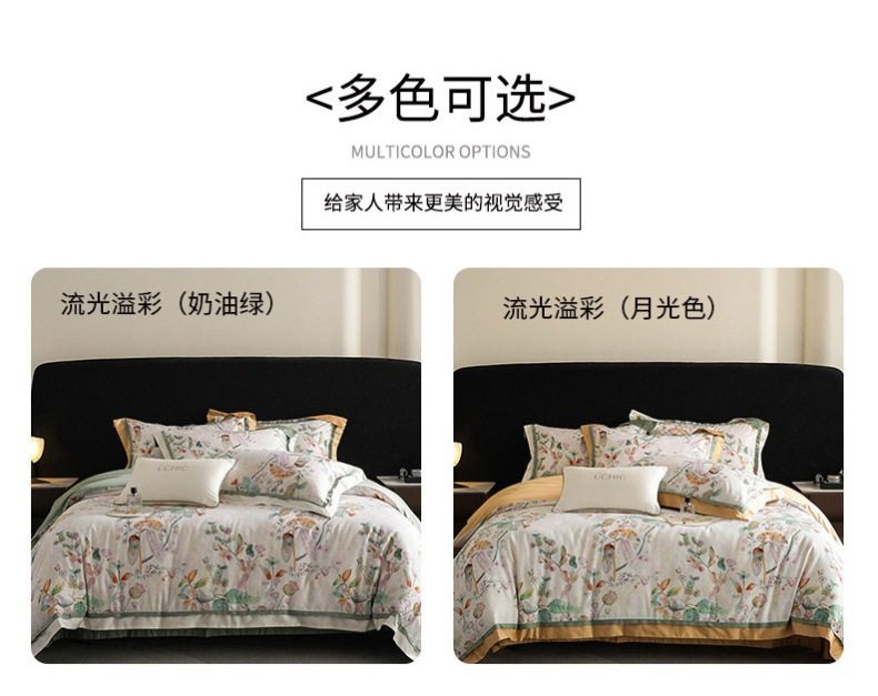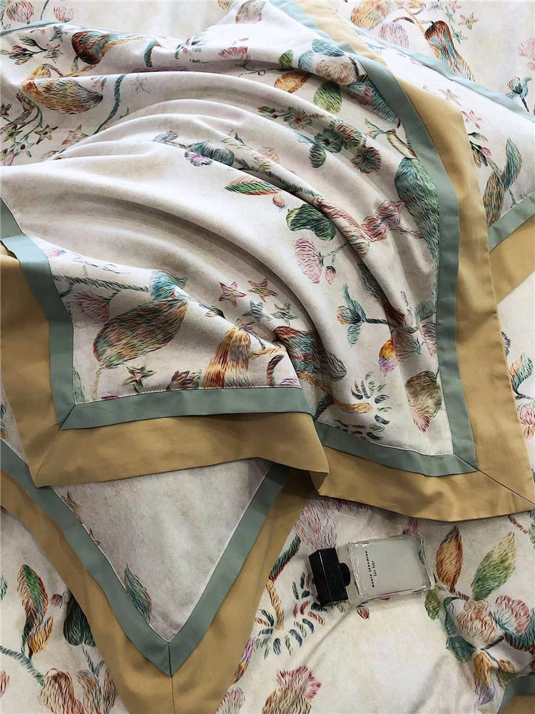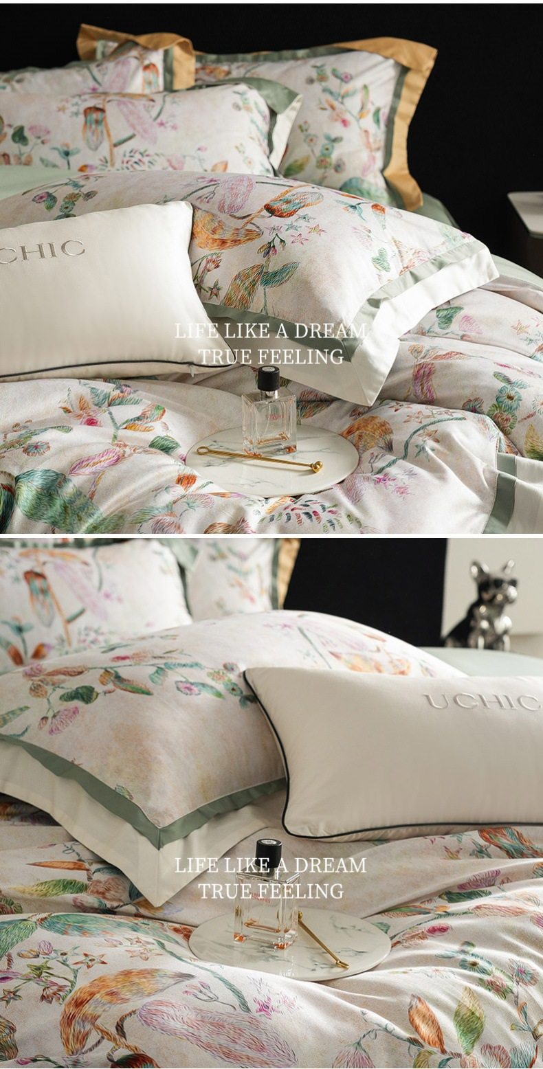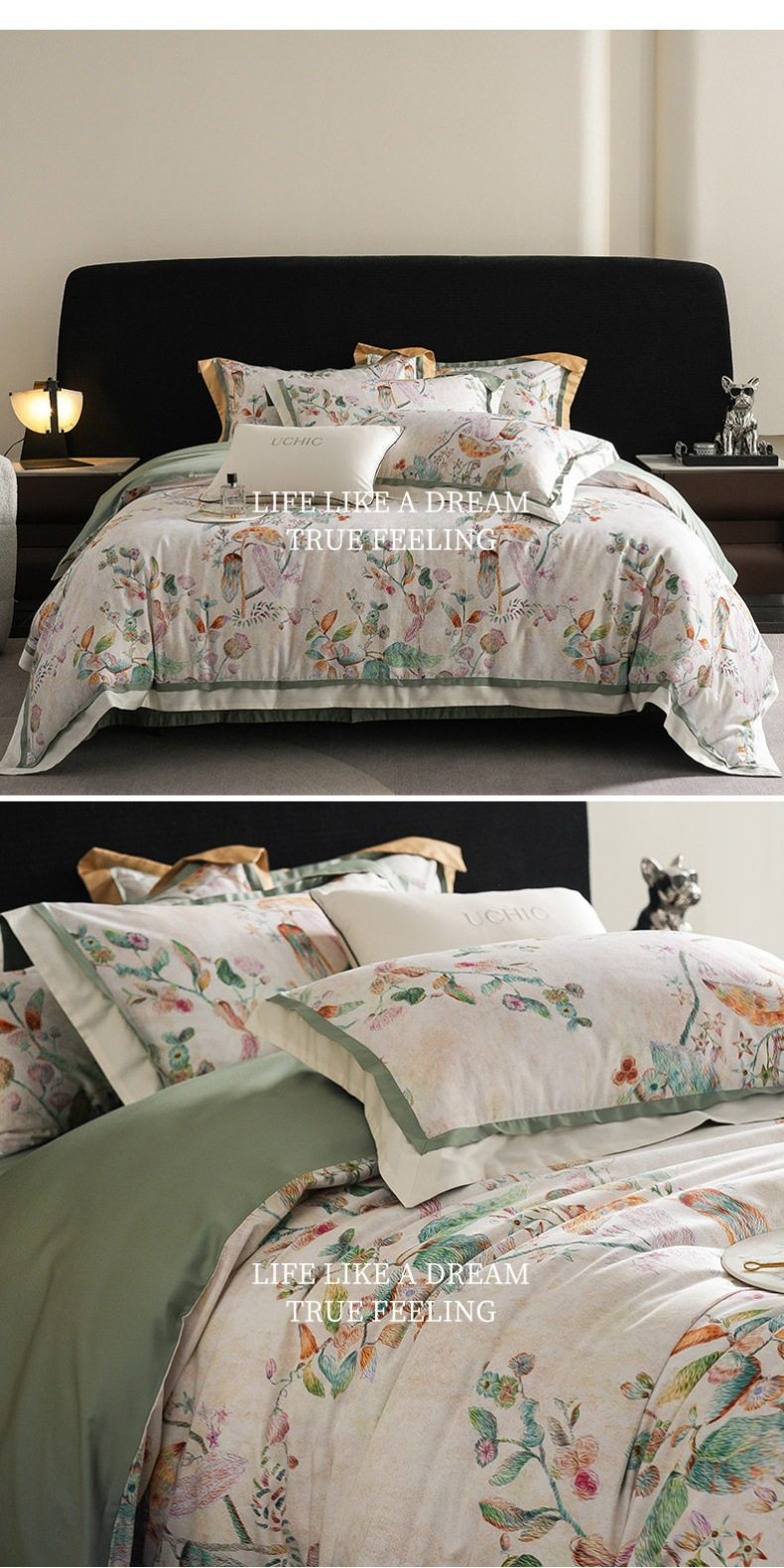 American Style Satin Cotton Four-Piece Set with Colorful Floral Digital Printing Pure Cotton Quilt Cover Bed Sheets Bedding 1.8