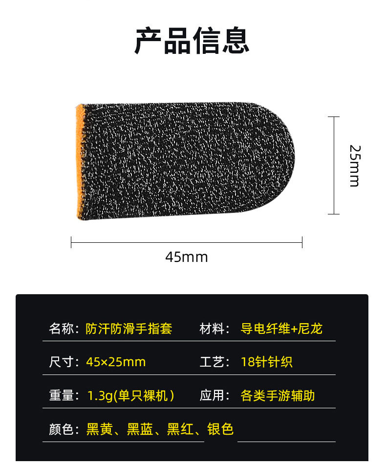 | Product color | (carbon fiber black and yellow) exquisite pair of finger cots,Exquisite pair of finger cots (carbon fiber black and blue),(carbon fiber black and red) exquisite pair of finger cots,(carbon fiber blue) exquisite pair of finger cots,(copper fiber black) exquisite pair of finger cots,(copper fiber gray and white) exquisite matching finger cots,(silver fiber double spell finger sleeves with hemp red) exquisite pair of finger sleeves,(silver fiber double-finger sleeve hemp black) exquisite pair of finger sleeves,Exquisite pair of finger cots (copper fiber gray and white),(ultra-thin fabric silver fiber) exquisite pair of finger cots,(carbon fiber) exquisite matching finger cots [random color],Carbon fiber (random single pack) |