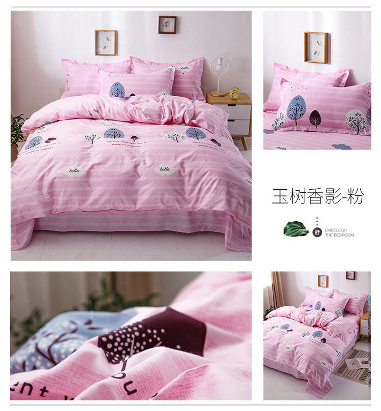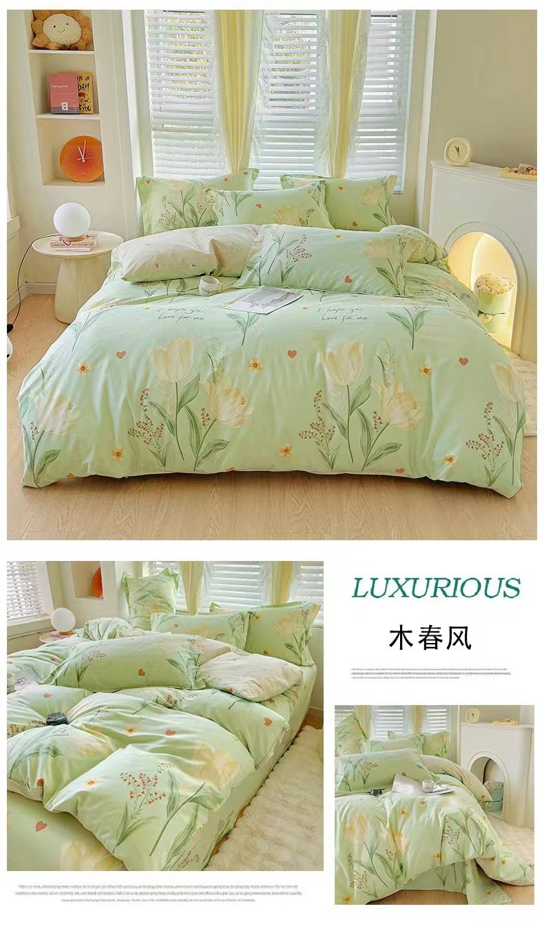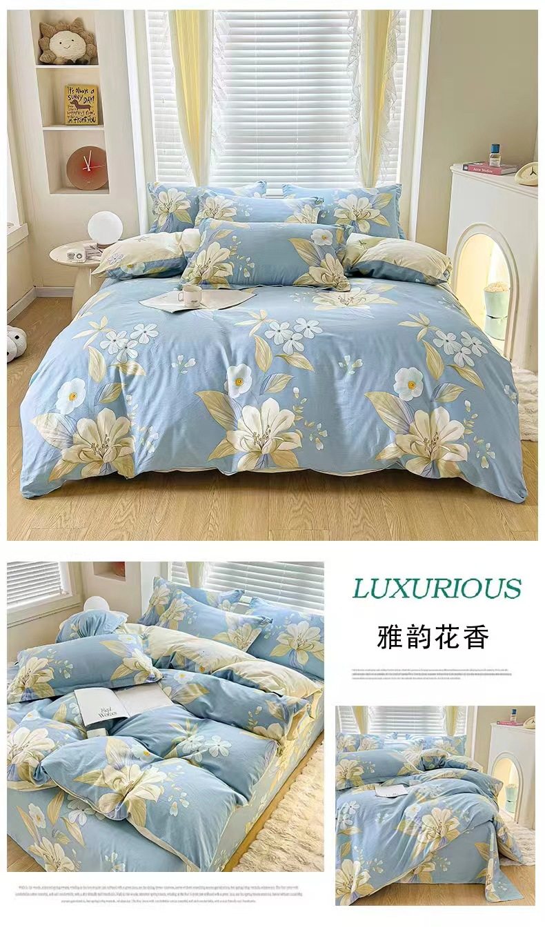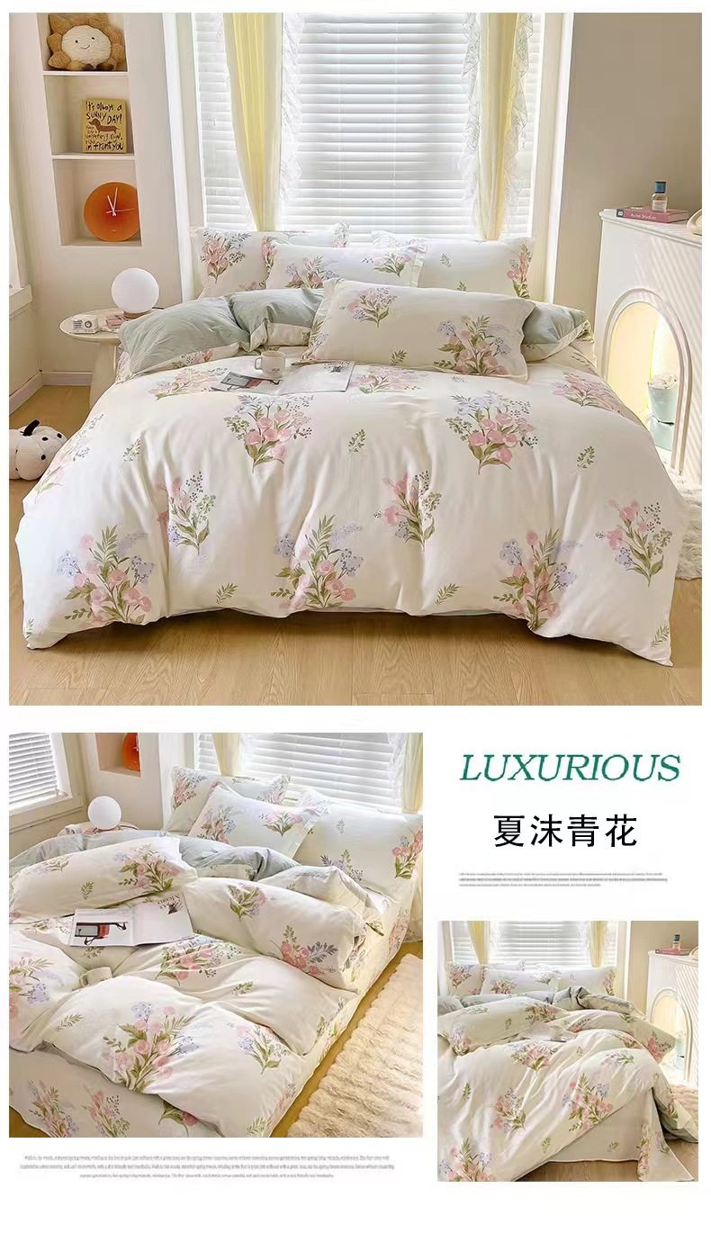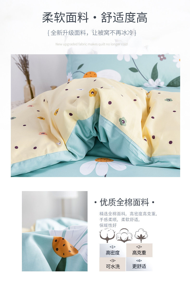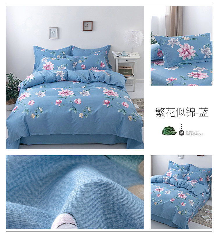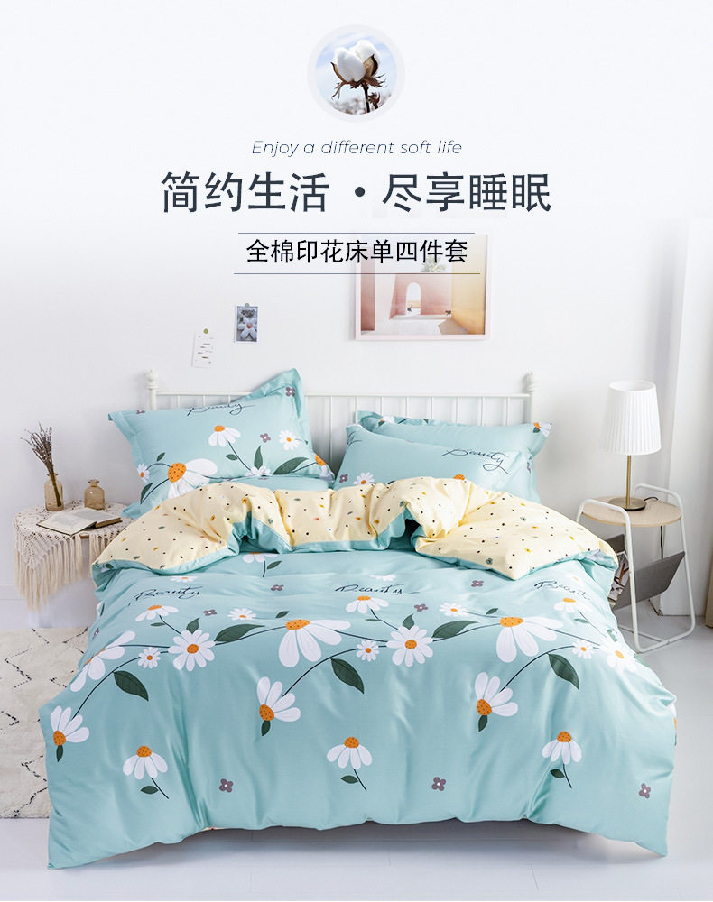 Cotton Four-piece Set 100 Pure Cotton Twill Printed Quilt Cover Quilt Cover Bed Sheet Dormitory Three-piece Set Gift Group Purchase