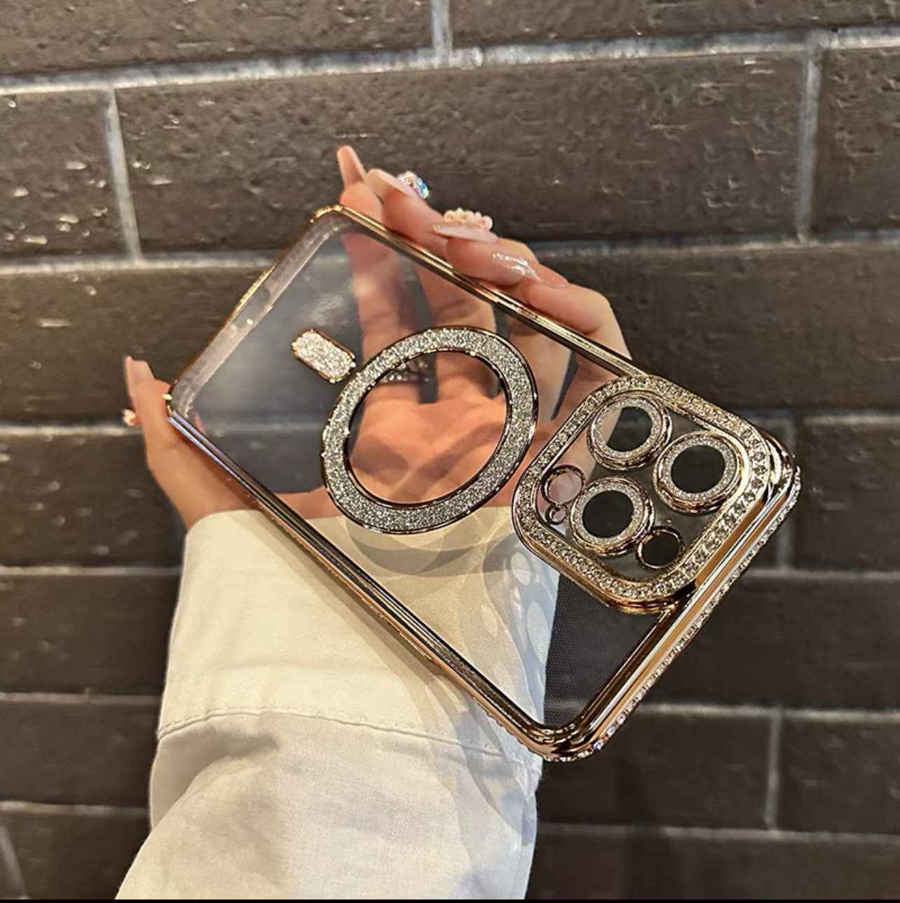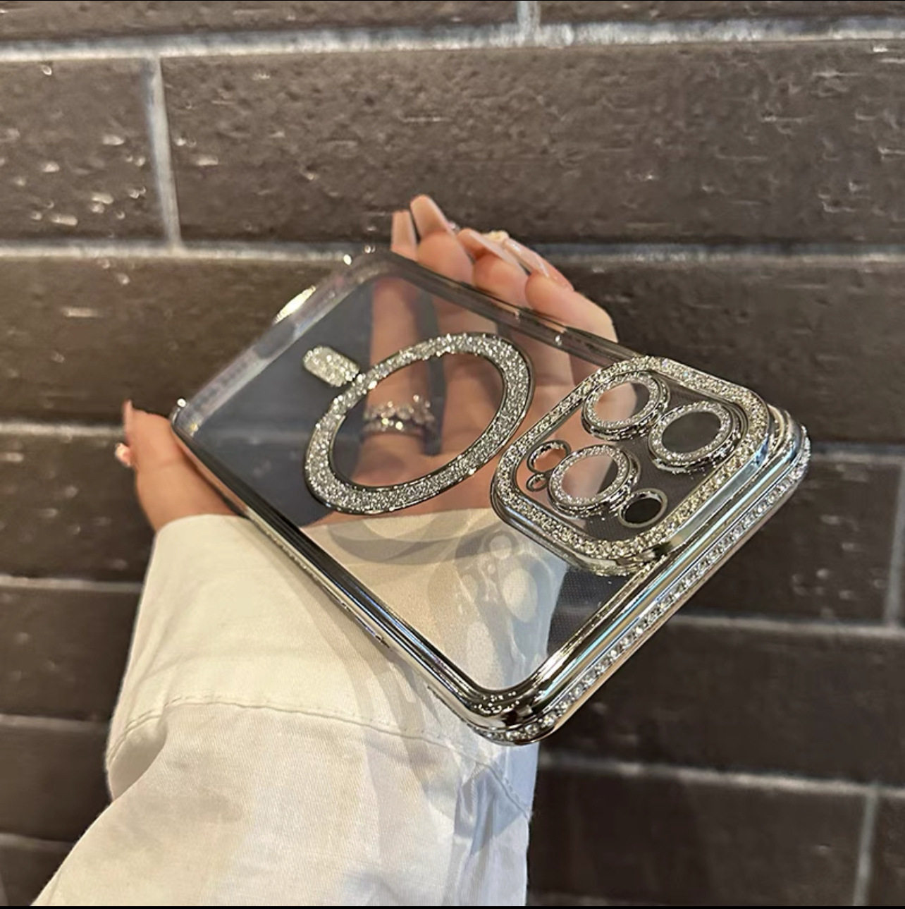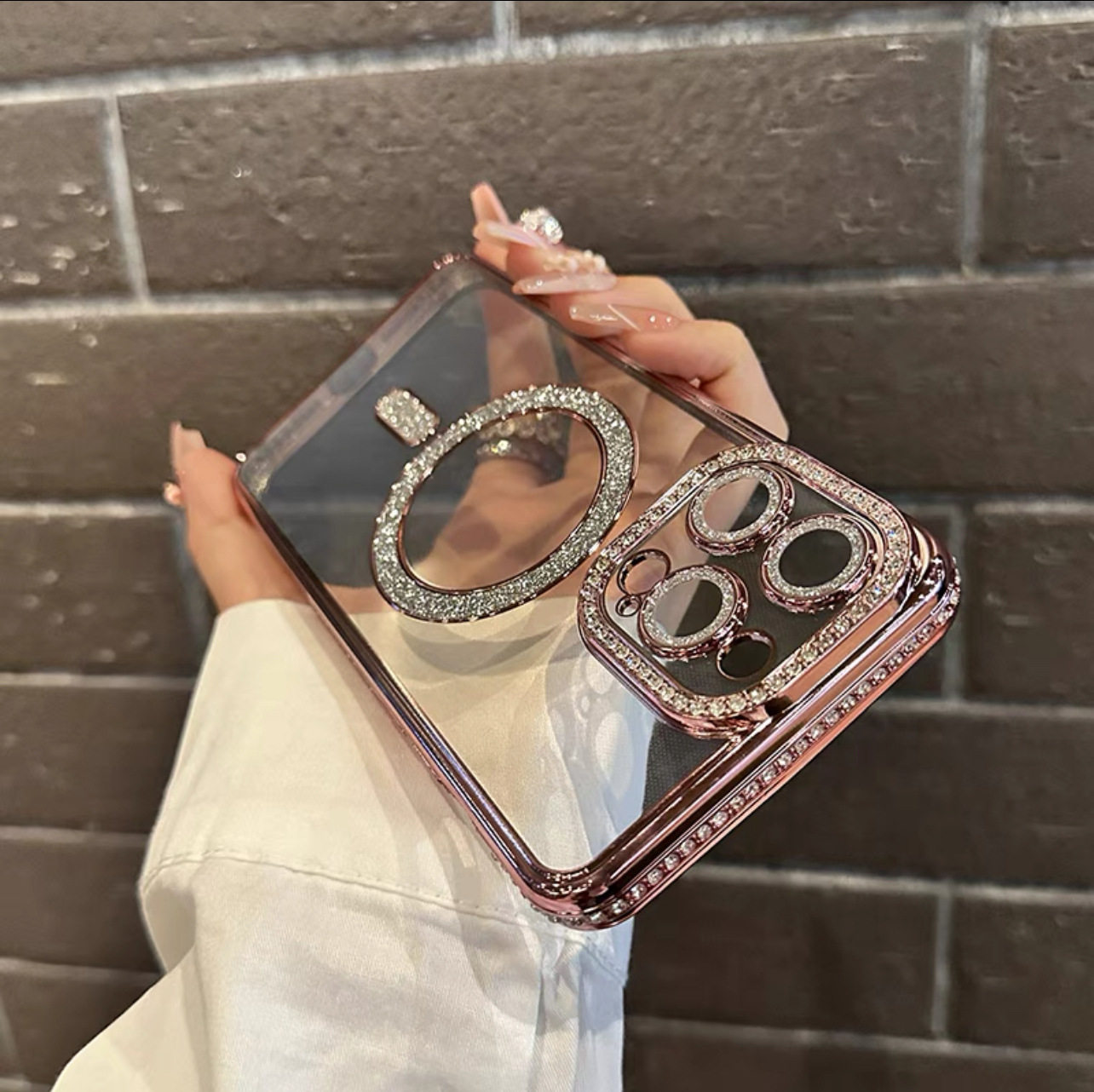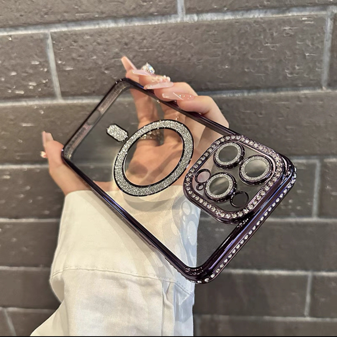Rhinestone Frame Suitable for Iphone17Pro Magnetic Transparent Mobile Phone Case Apple 16 Glitter Anti-Fall 13 Soft Shell 12