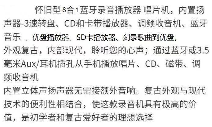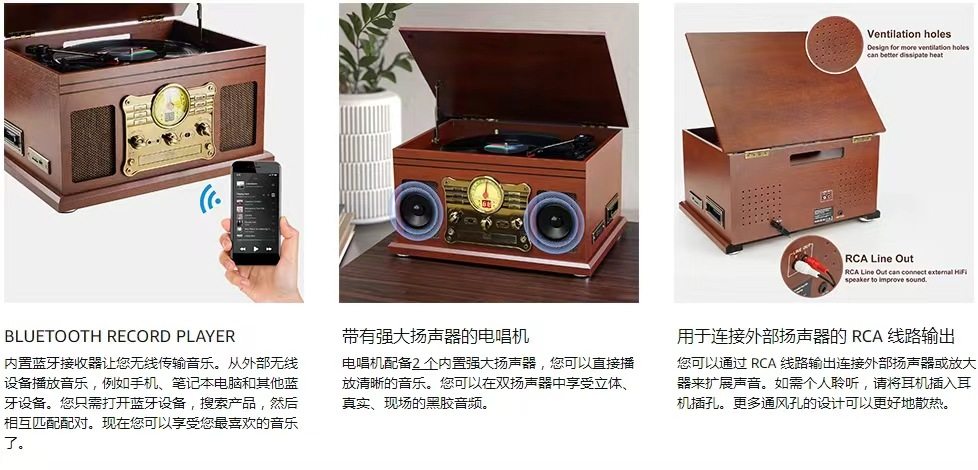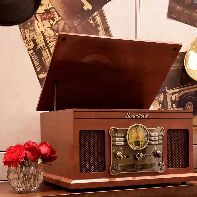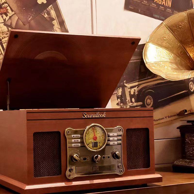 Retro phonograph vinyl record player old-fashioned record player CD player tape player radio integrated multifunctional speaker