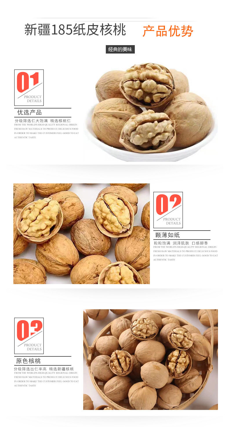 Xinjiang 185 paper Peel walnut primary color fruit washed fruit annual supply export factory nut fried goods bulk wholesale