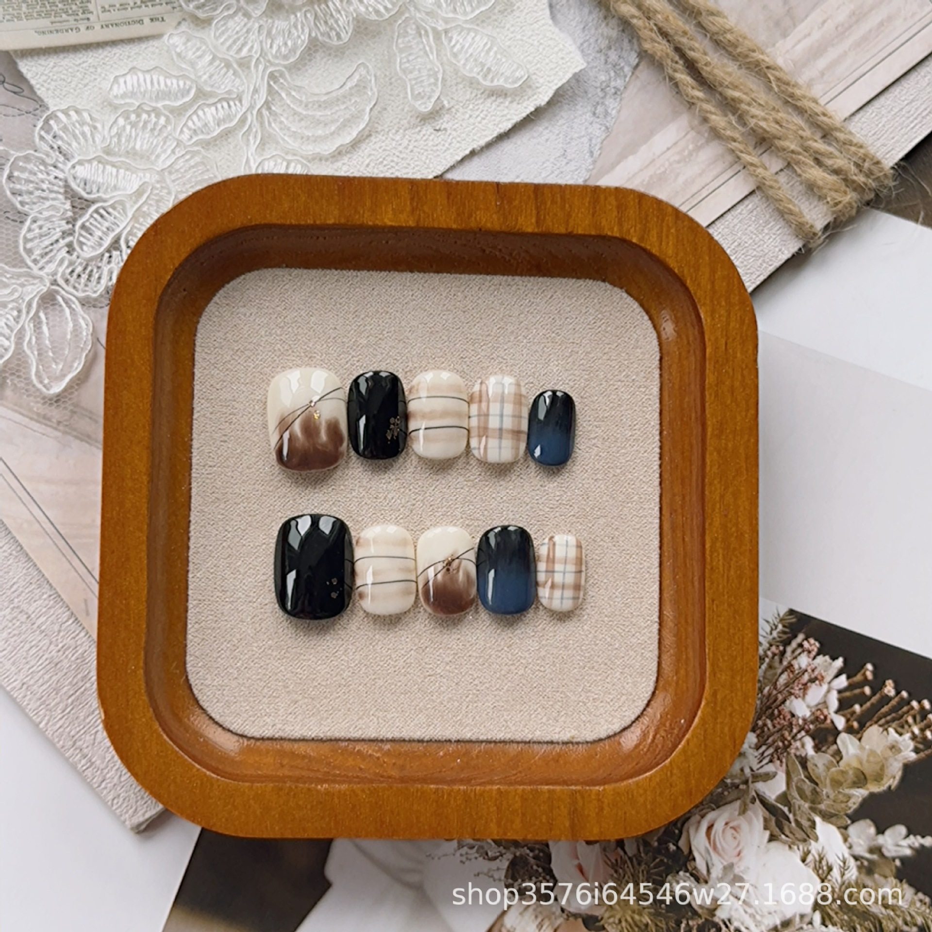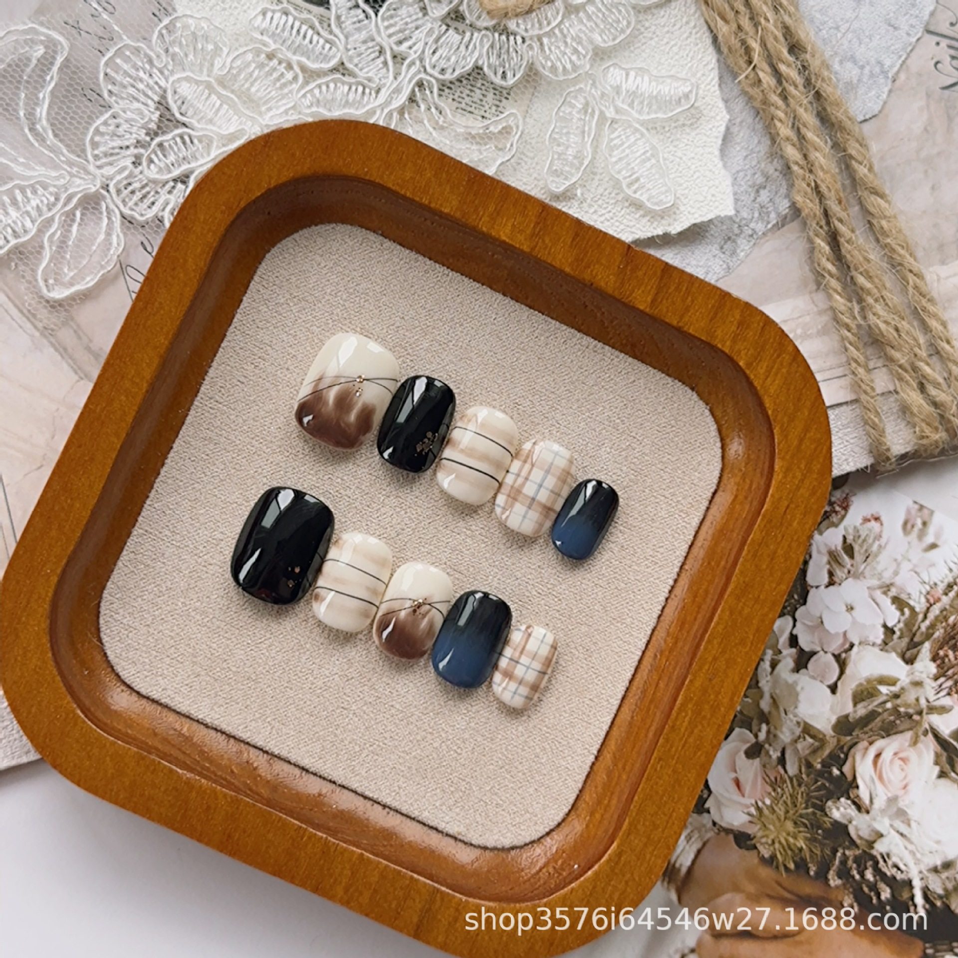 Handmade wear nail 2024 chocolate hazelnut Maillard temperament short manicure wear nail White Hot New