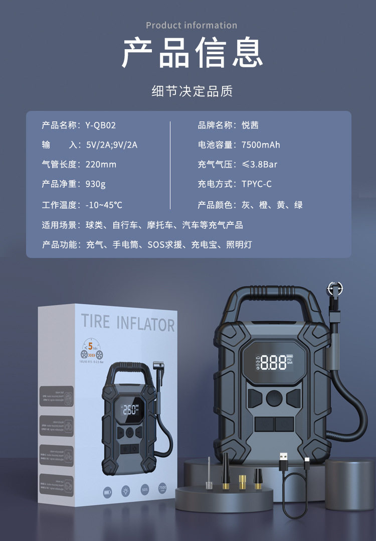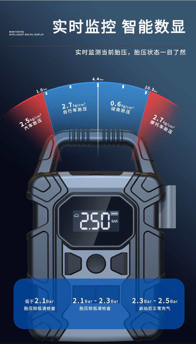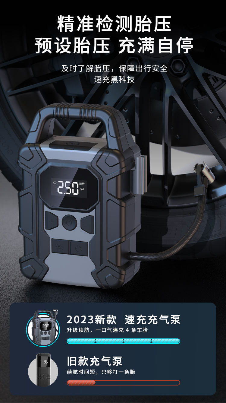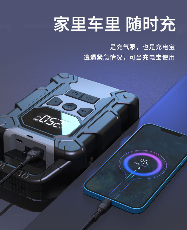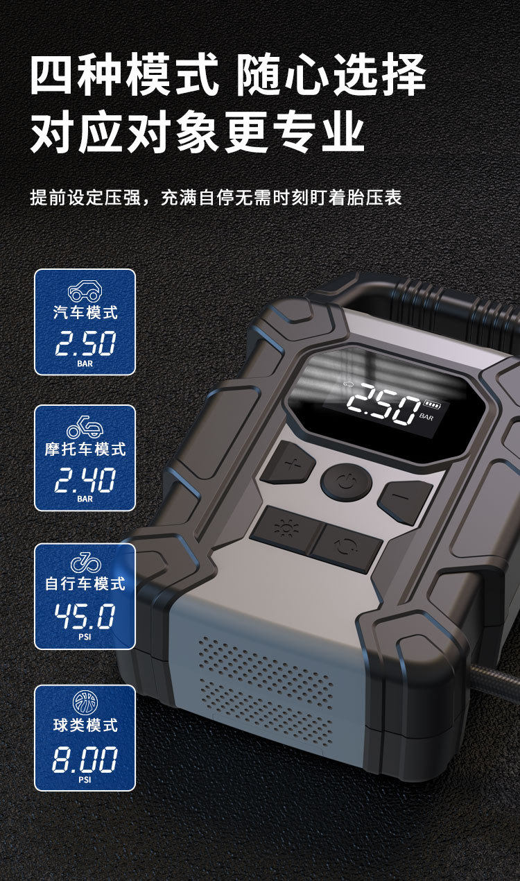 Cross-Border Hot Selling High-Power Wireless Car Air Pump Tire Car Multi-Function Portable Electric Air Pump Digital Display