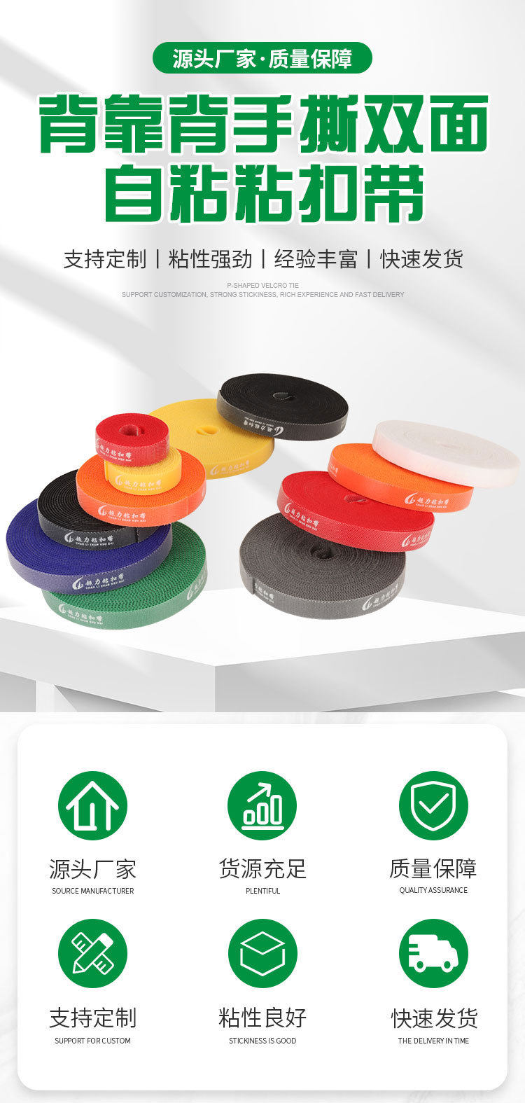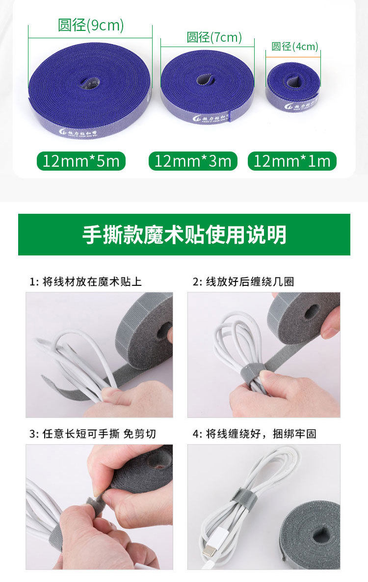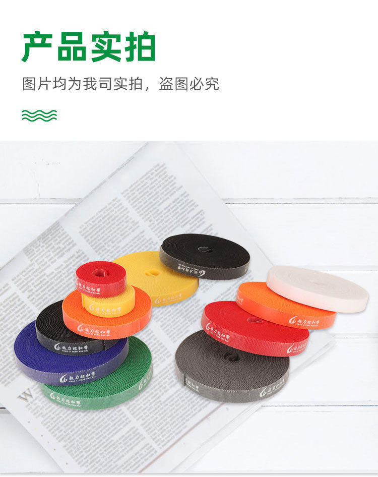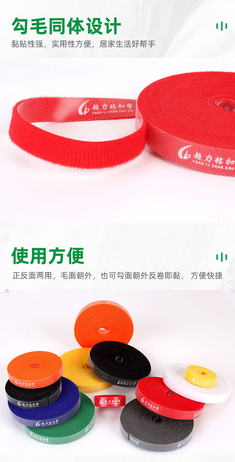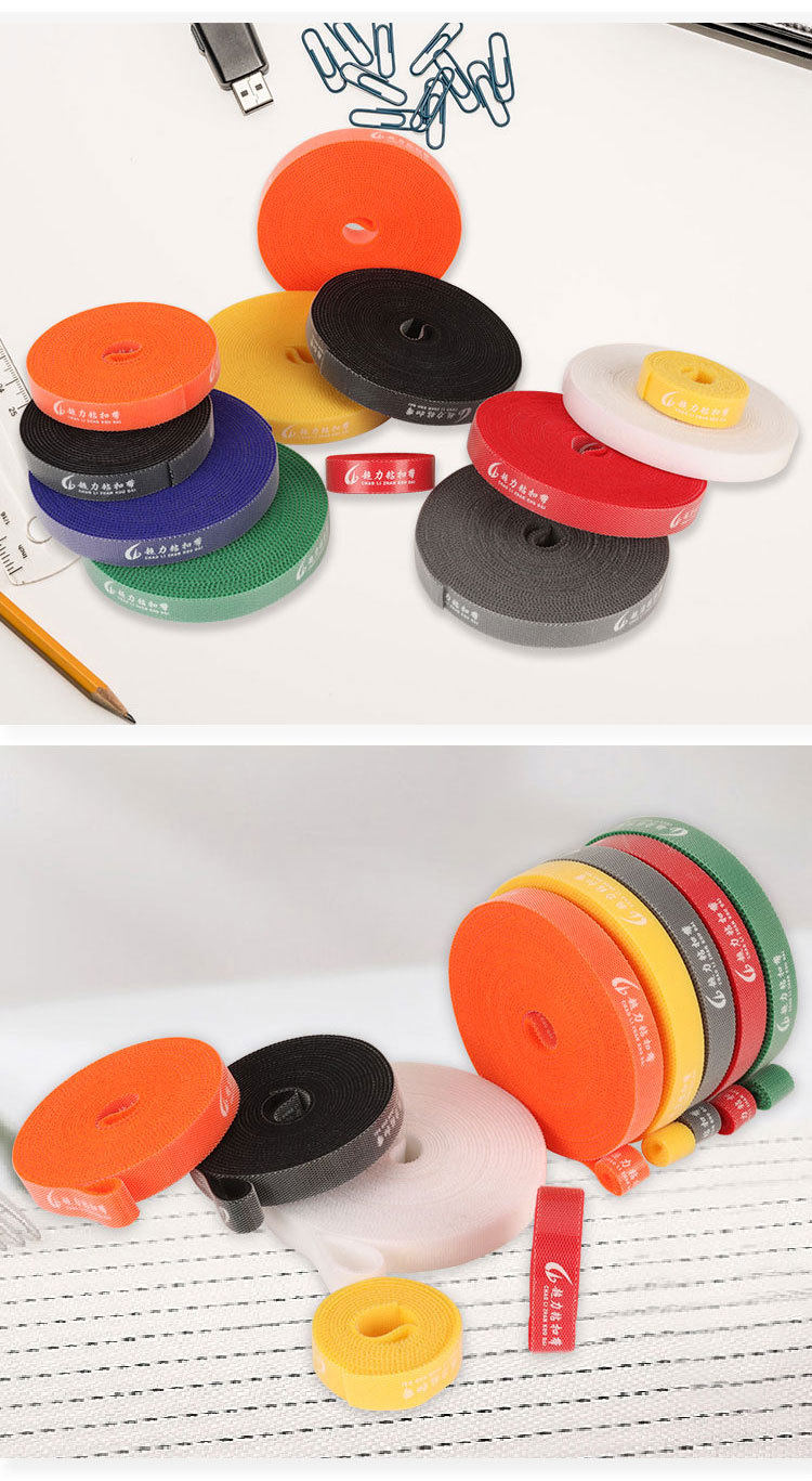 In stock back-to-back hand-tearing double-sided self-adhesive buckle with Velcro cable storage tape color cutting