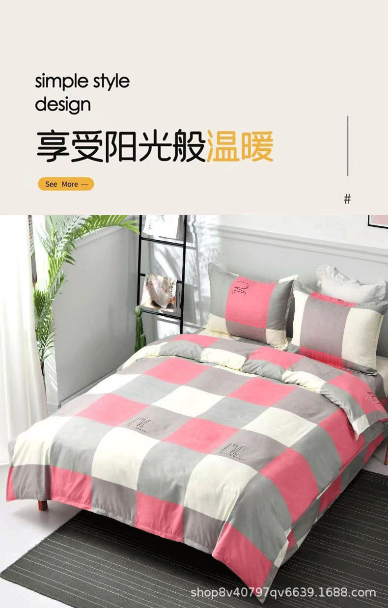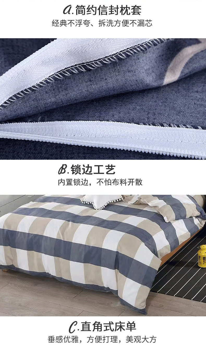 Dormitory three-piece skin-friendly brushed plaid quilt cover student single bed sheet upper and lower bed quilt cover dormitory bedding