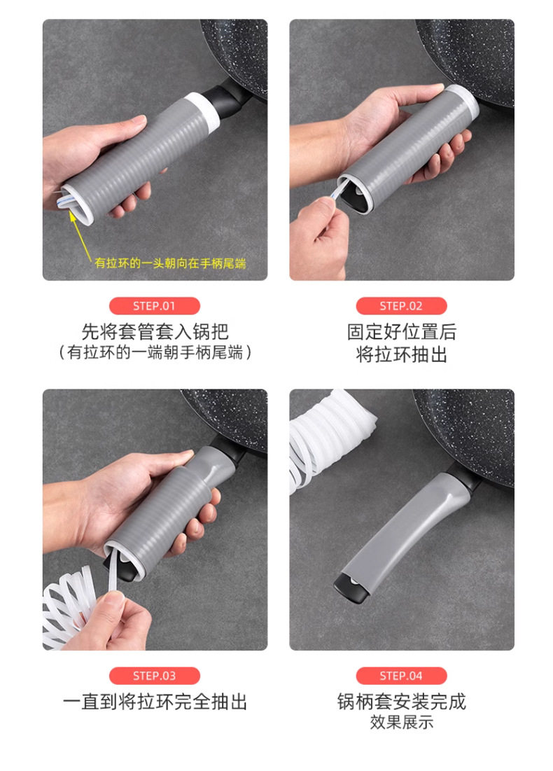Wok handle insulation cover household stainless steel pot handle cover anti-scald artifact rubber cover handmade iron pan frying pot handle cover