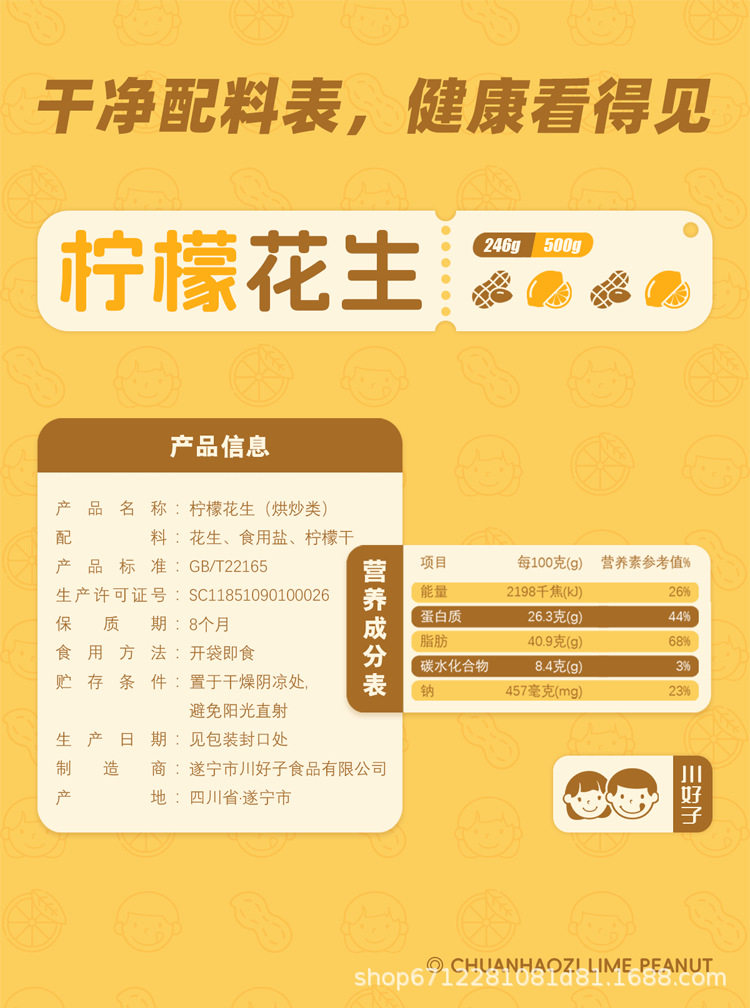 | Packaging specifications | Lemon peanut 500gx1 pack |