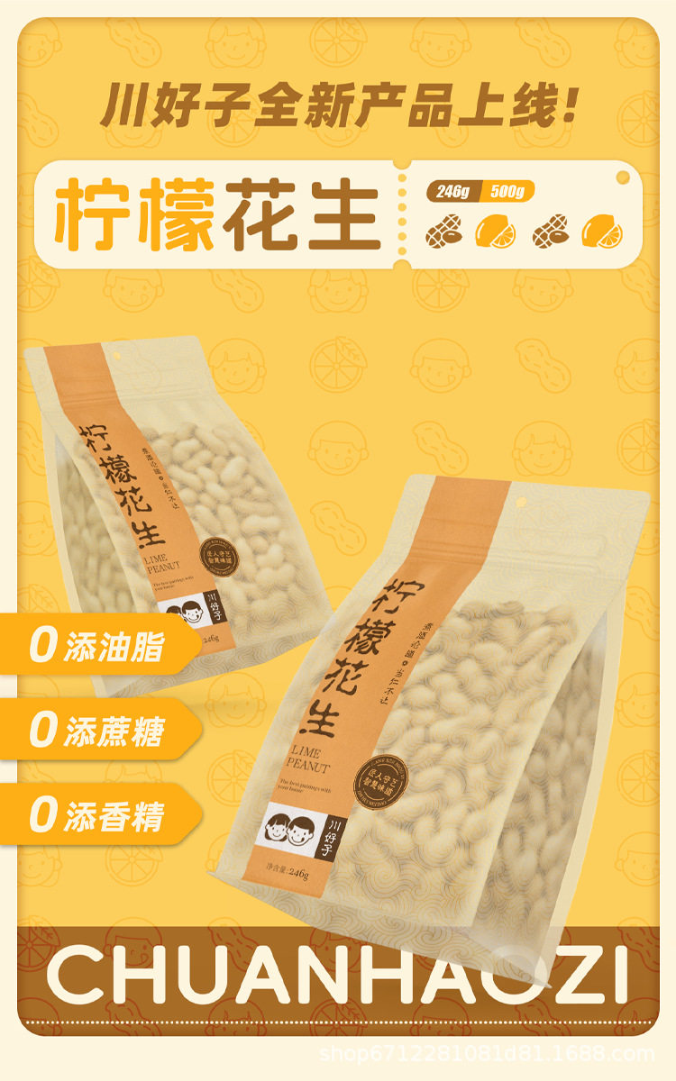 Sichuan Haozi Lemon Peanut 500g High Protein Dried Fruit Nuts Roasted Goods Leisure Chasing Drama Office Snacks