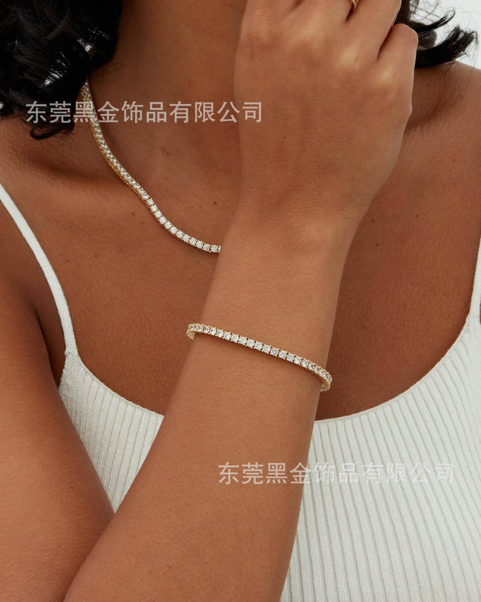 Cross-border Amazon explosions 18K full diamond bracelet single row tennis men's and women's bracelet anklet jewelry wholesale