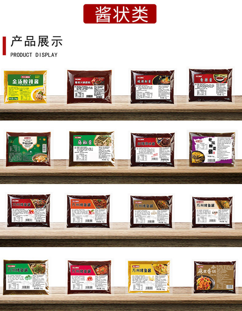 | Specification | Golden soup chili sauce,Hot sauce,Tomato hotpot base,Vine pepper sauce,Hot and sour powder sauce,Laotan pickled cabbage sauce,Spicy sauce,Garlic sauce,Sauce,Tom yum sauce,Golden soup sauerkraut sauce |
