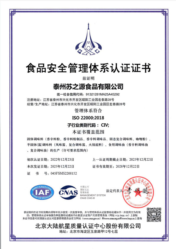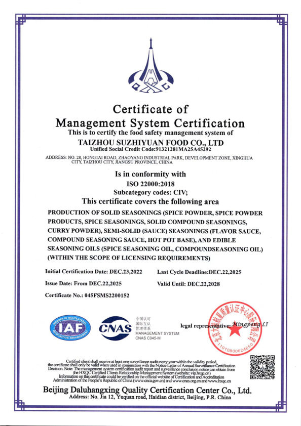 | Manufacturer | Taizhou suzhiyuan food co., ltd |