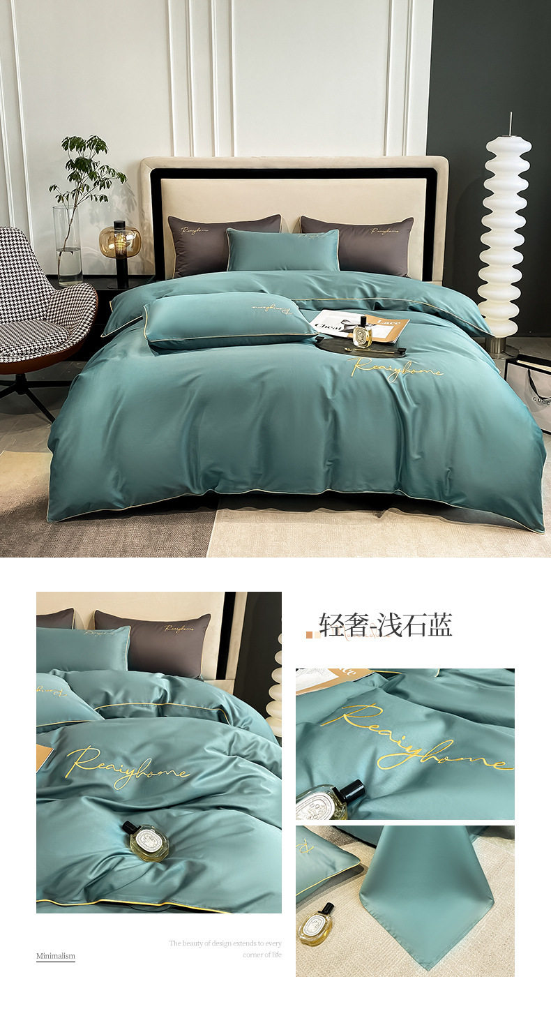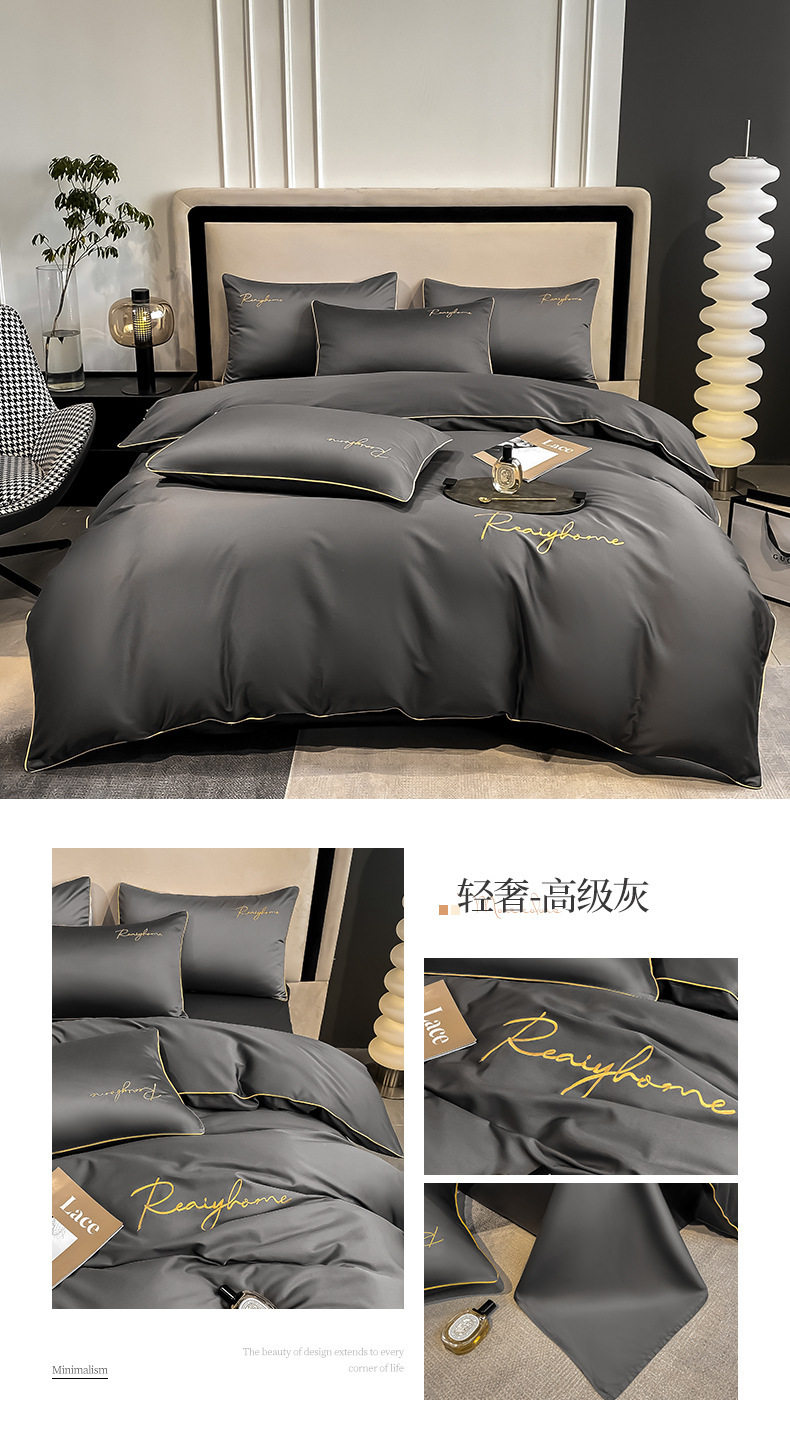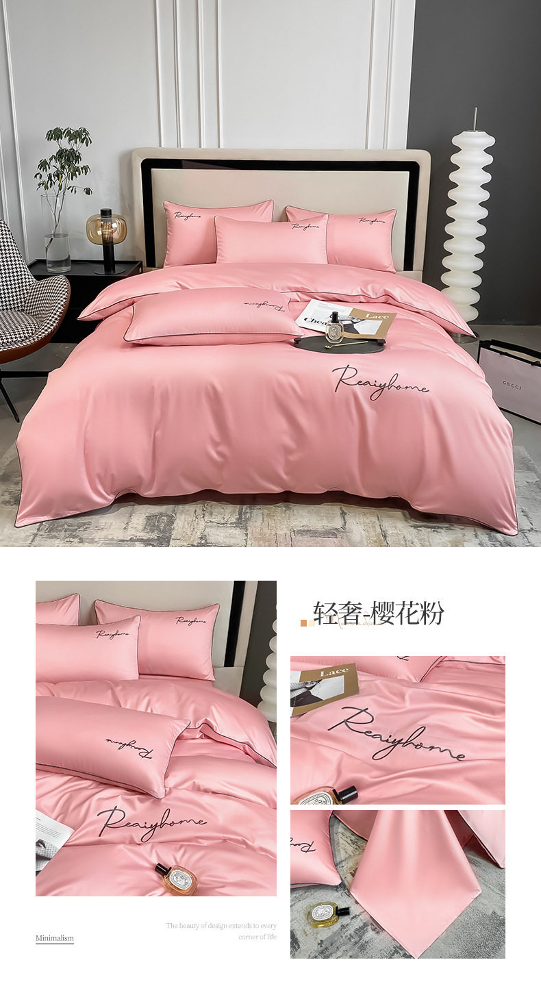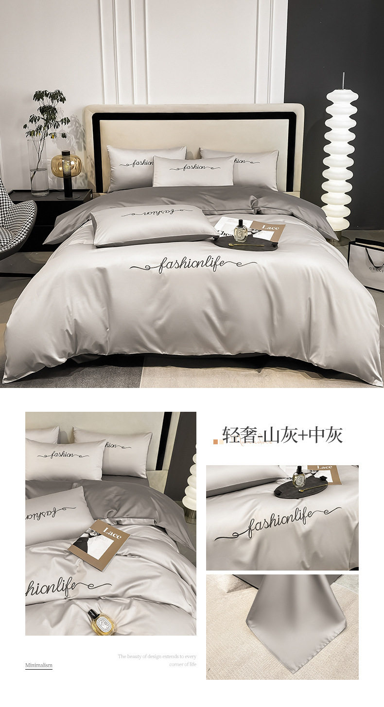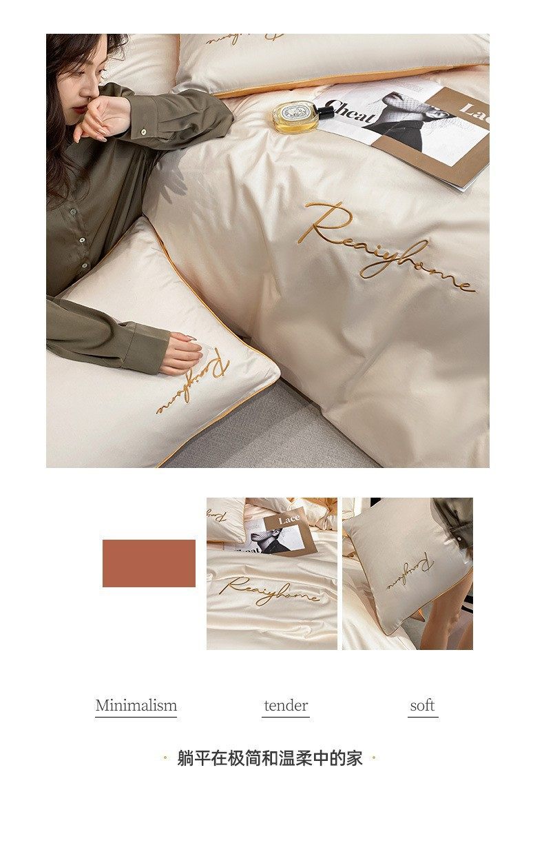 Light Luxury 60 Long-staple Cotton Four-piece Set Cotton Bed Sheet Quilt Cover High-grade Bedclothes Dormitory Bedding Three-piece Set 4