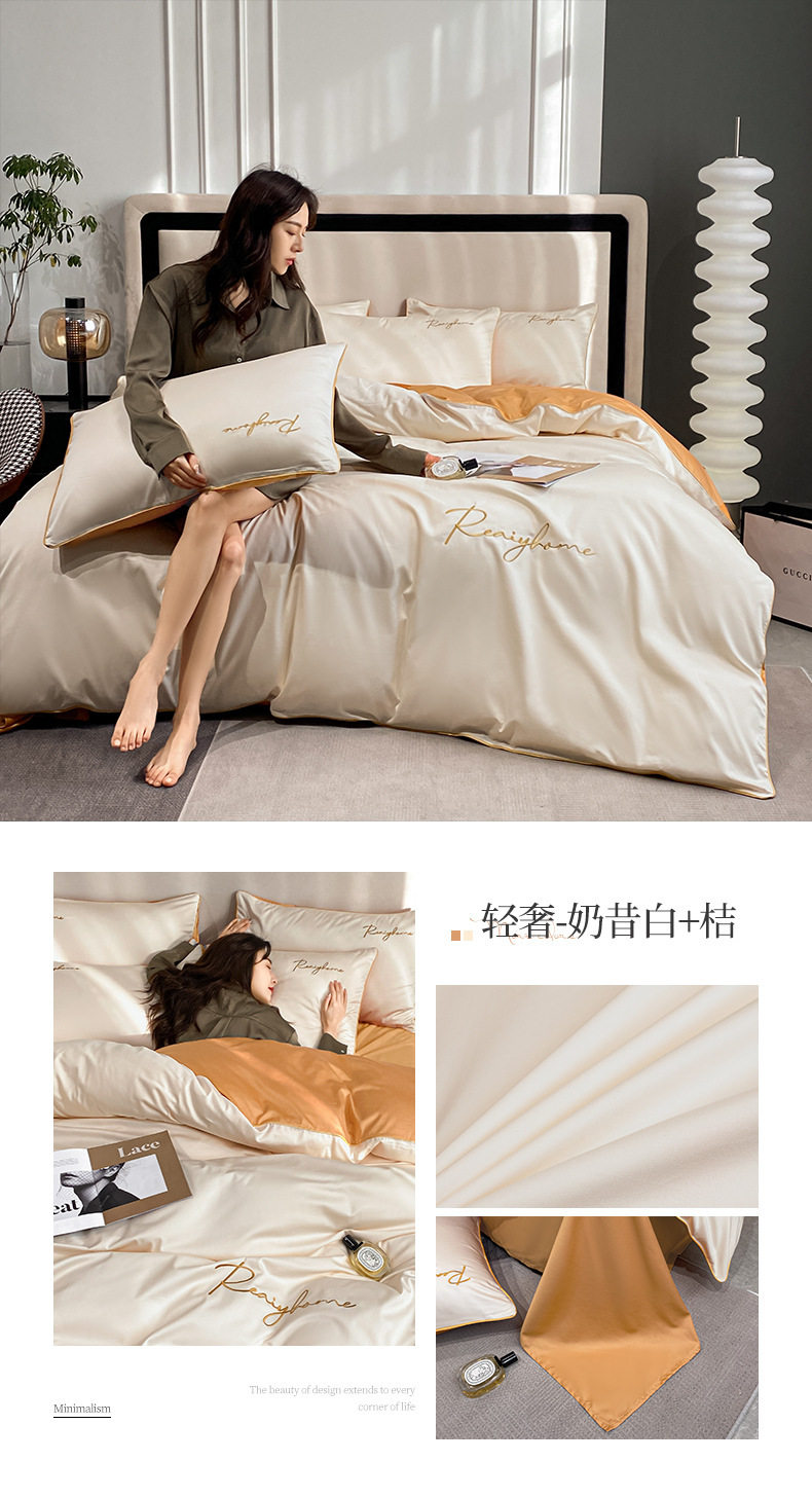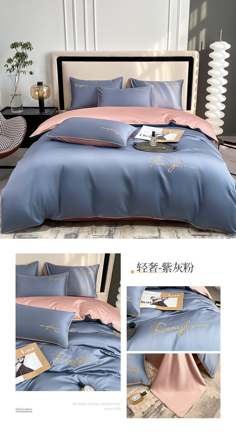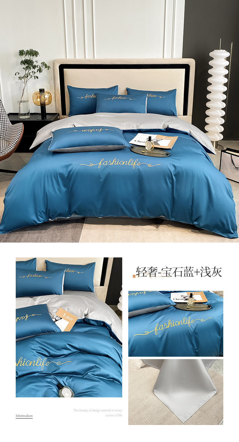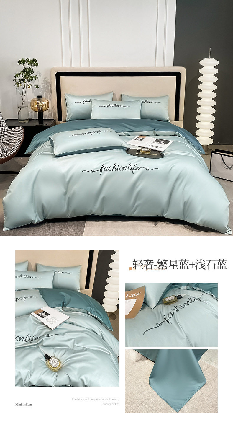 Light Luxury 60 Long-staple Cotton Four-piece Set Cotton Bed Sheet Quilt Cover High-grade Bedclothes Dormitory Bedding Three-piece Set 4