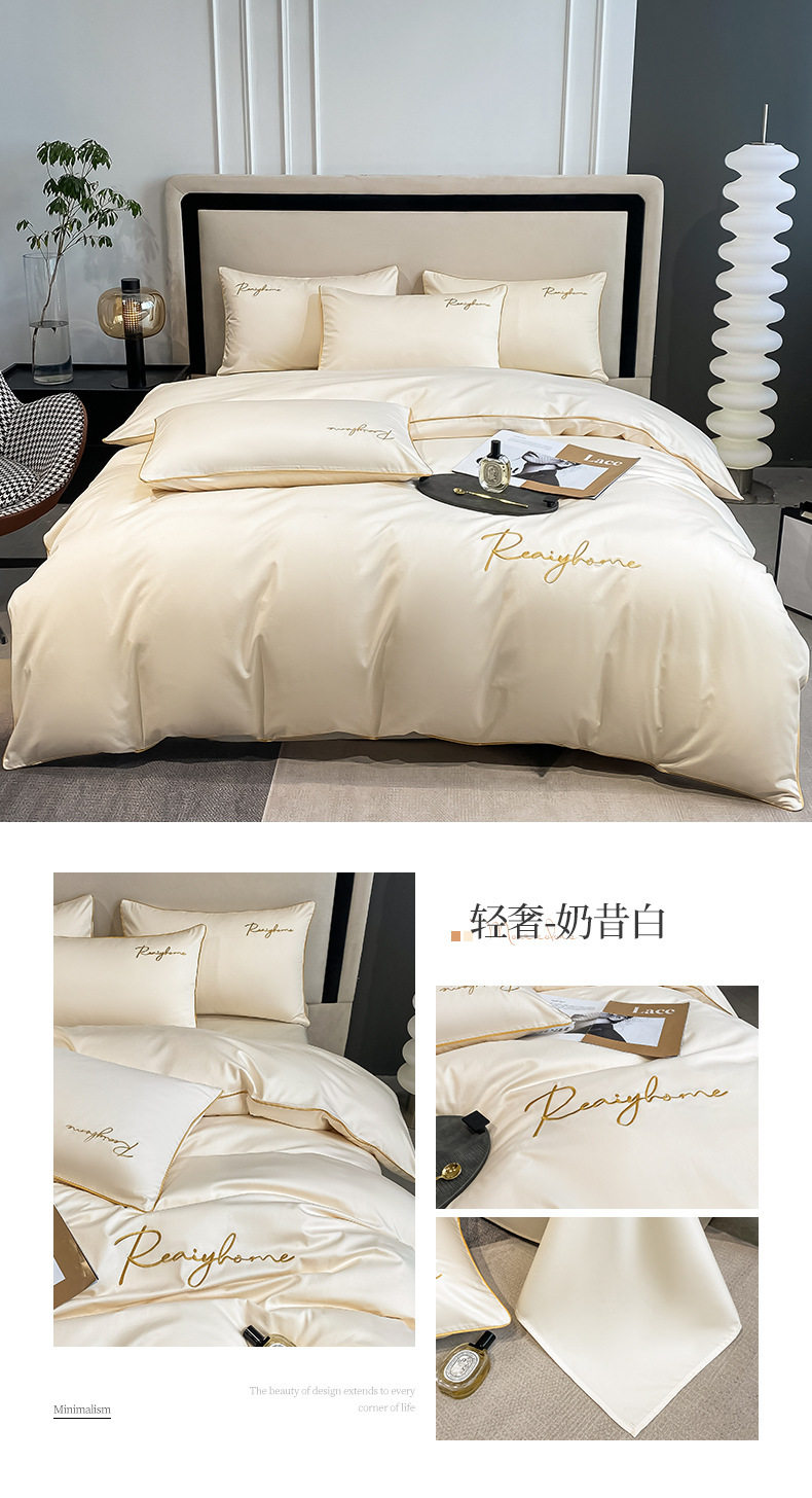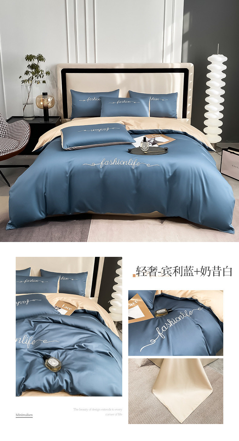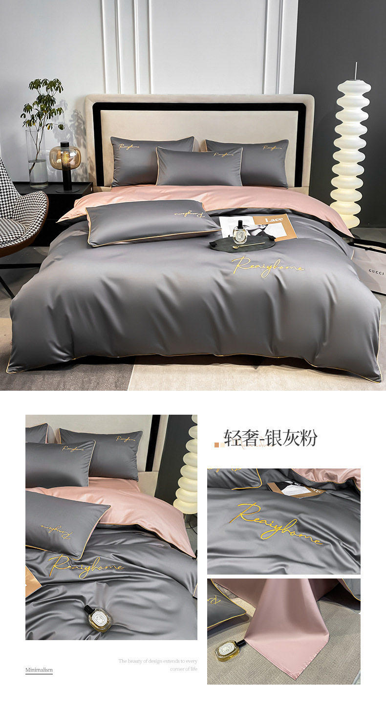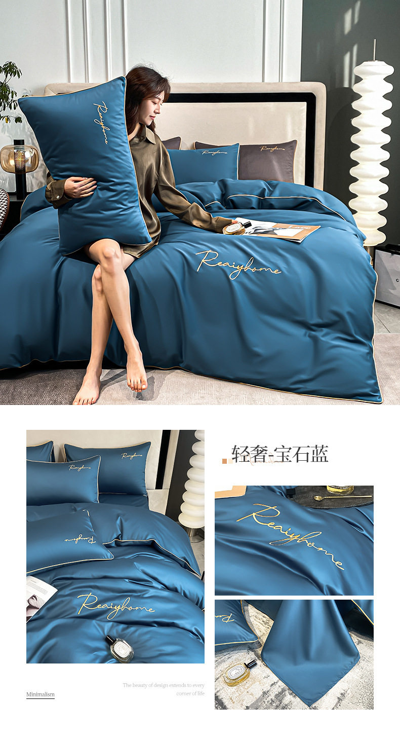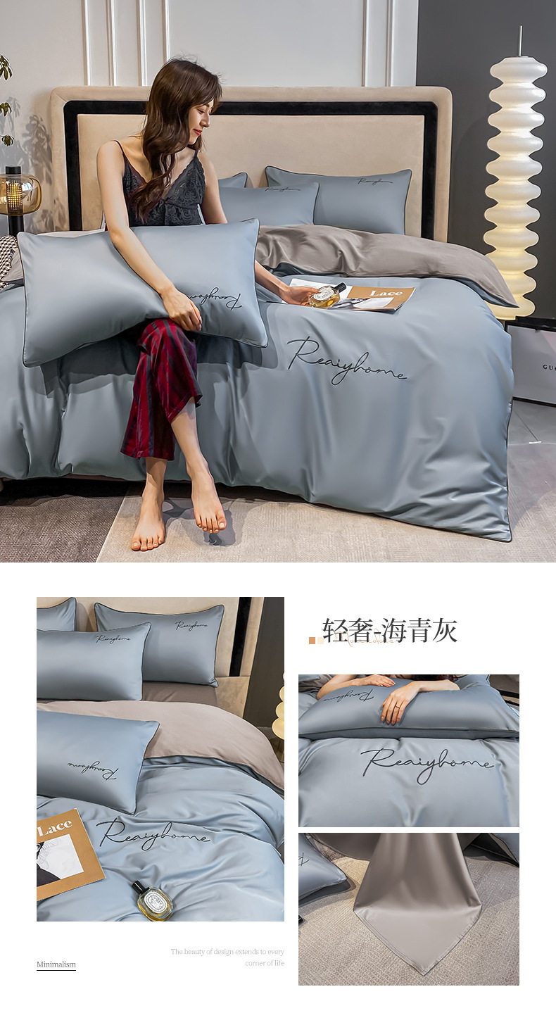 Light Luxury 60 Long-staple Cotton Four-piece Set Cotton Bed Sheet Quilt Cover High-grade Bedclothes Dormitory Bedding Three-piece Set 4