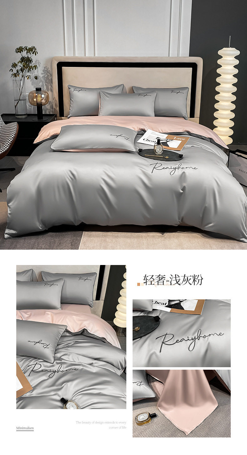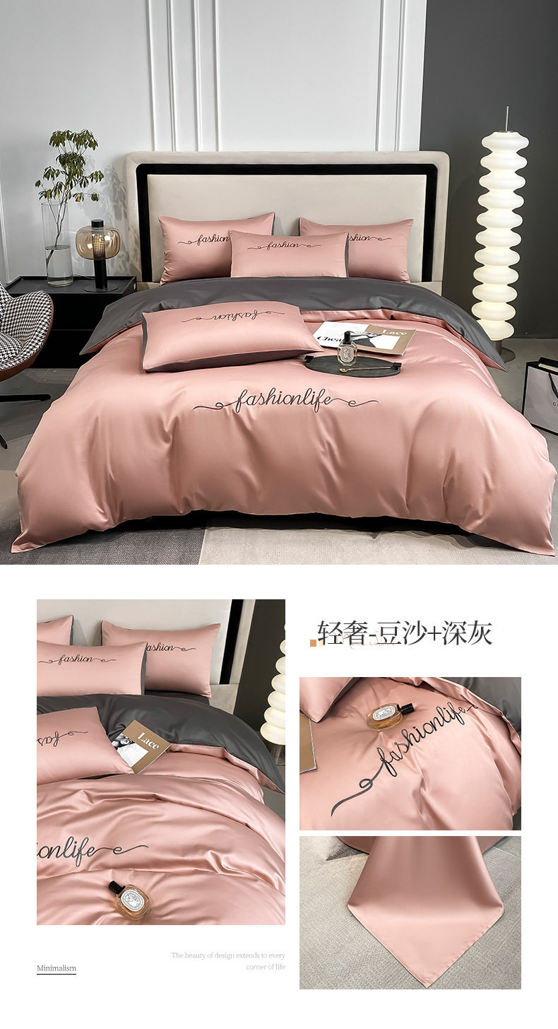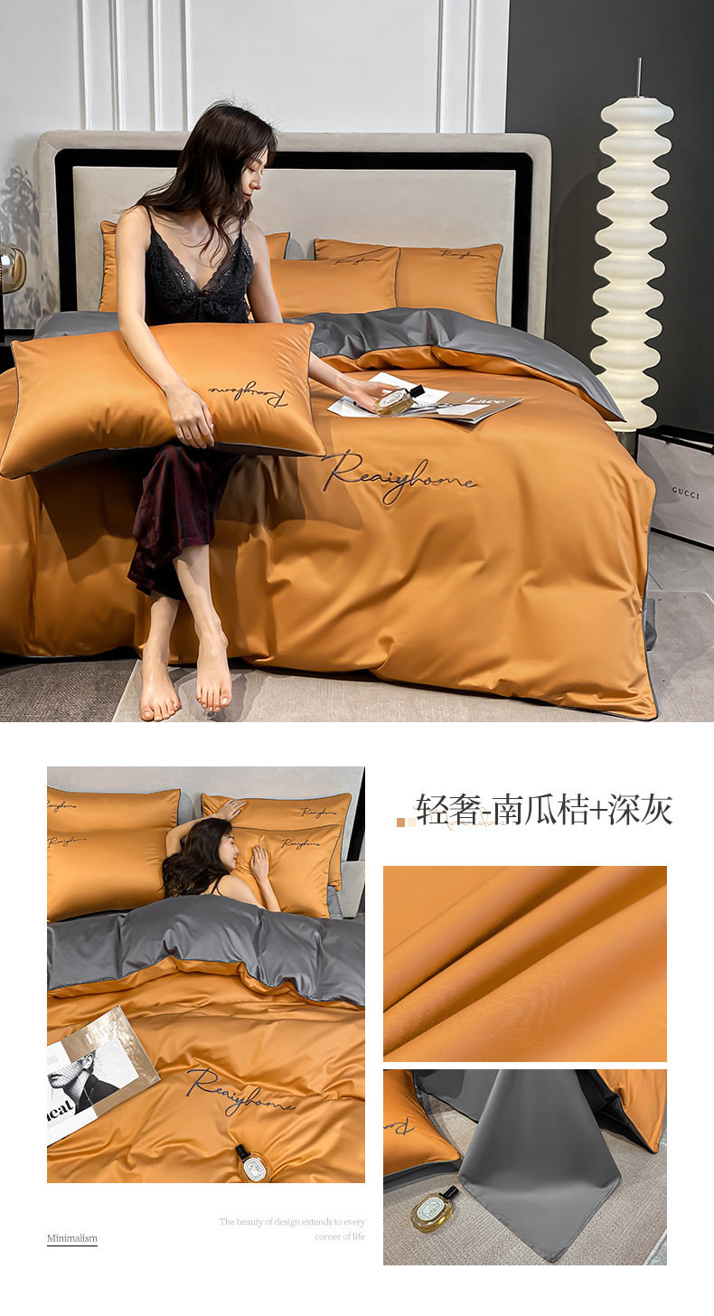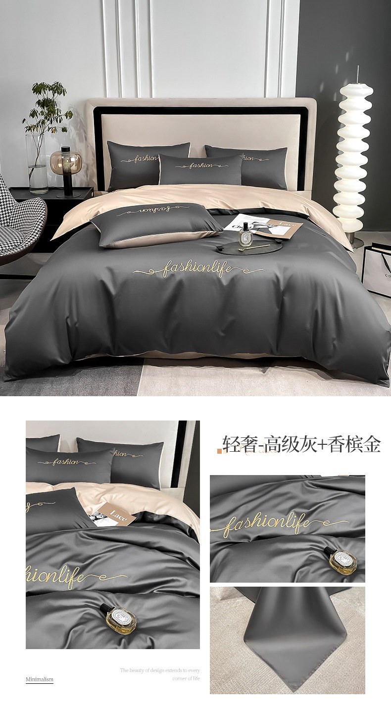 Light Luxury 60 Long-staple Cotton Four-piece Set Cotton Bed Sheet Quilt Cover High-grade Bedclothes Dormitory Bedding Three-piece Set 4