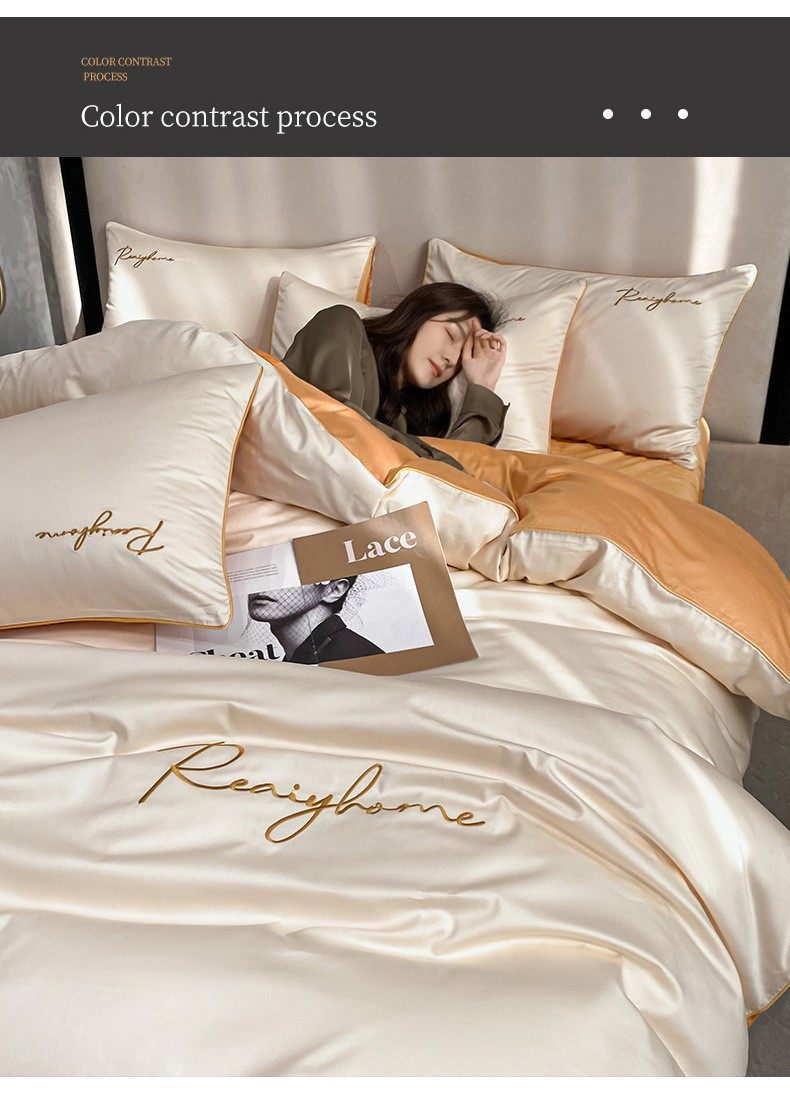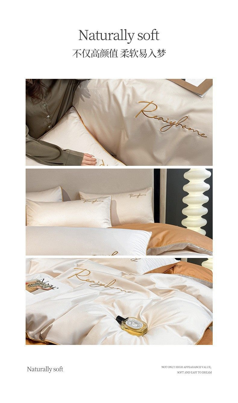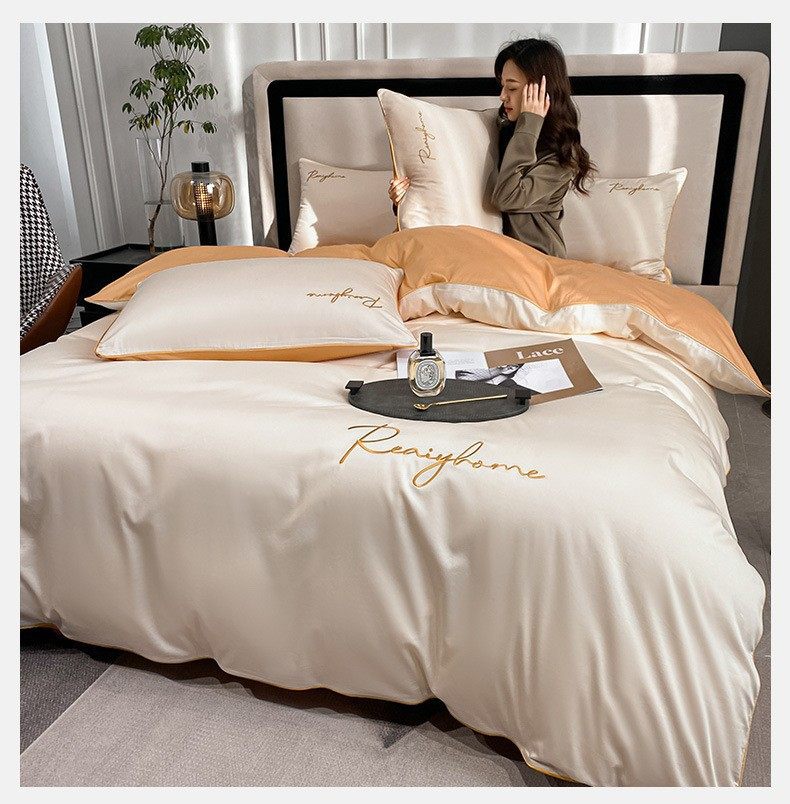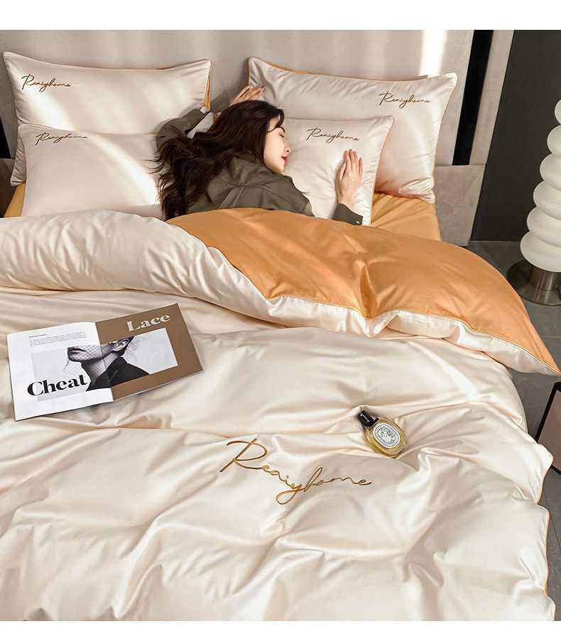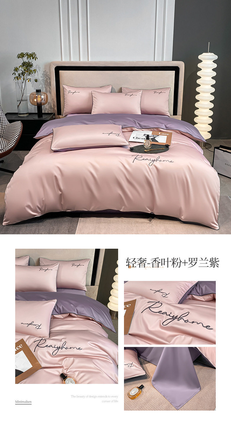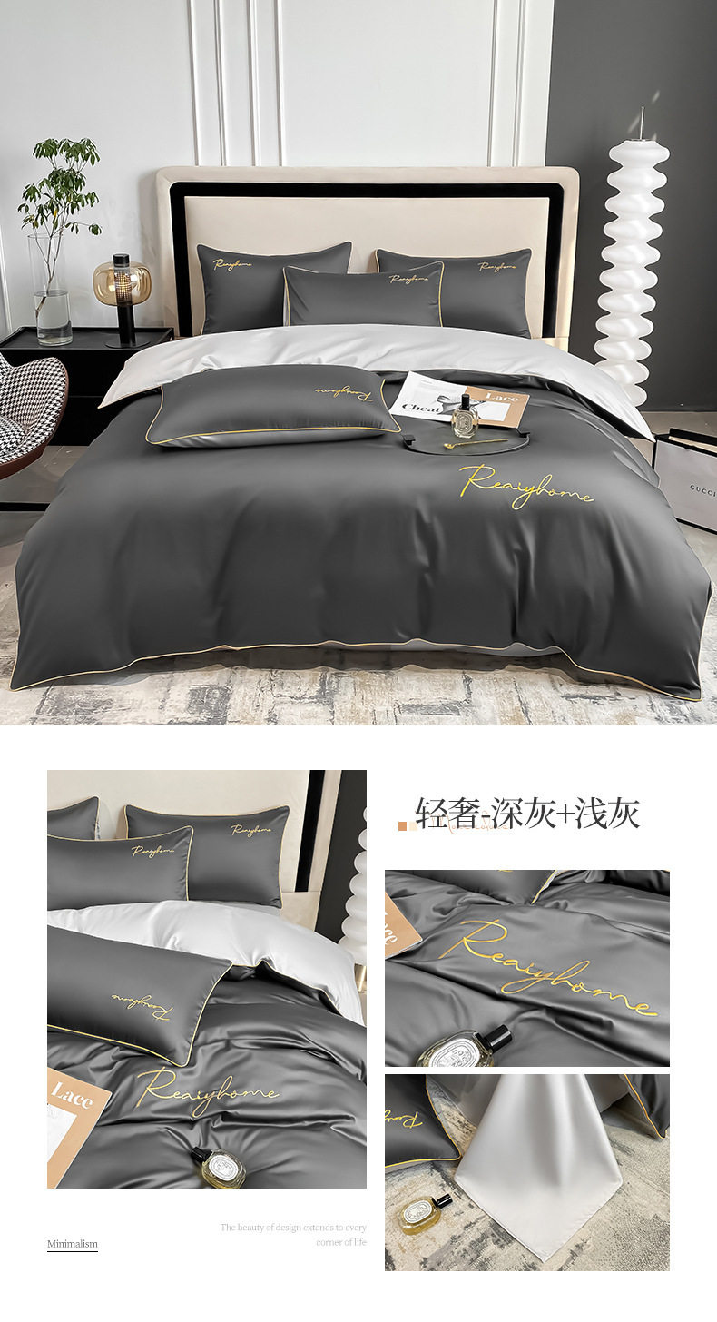 Light Luxury 60 Long-staple Cotton Four-piece Set Cotton Bed Sheet Quilt Cover High-grade Bedclothes Dormitory Bedding Three-piece Set 4