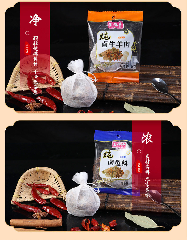 | Specifications | Marinated meat 15g,15g braised chicken and duck,Marinated spareribs 15g,Marinated beef and mutton 15g,Tea egg material 15g,15g marinated fish |
