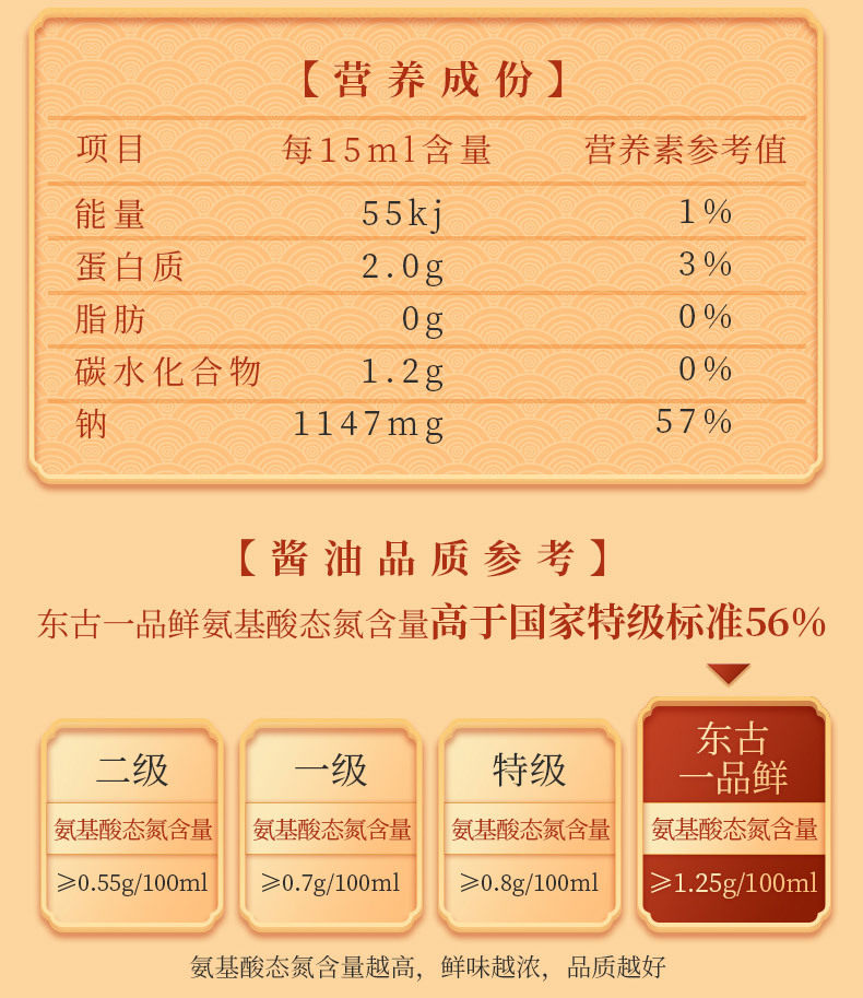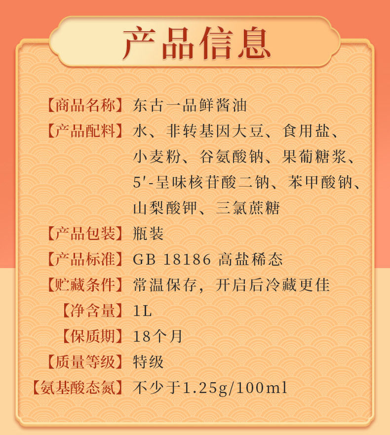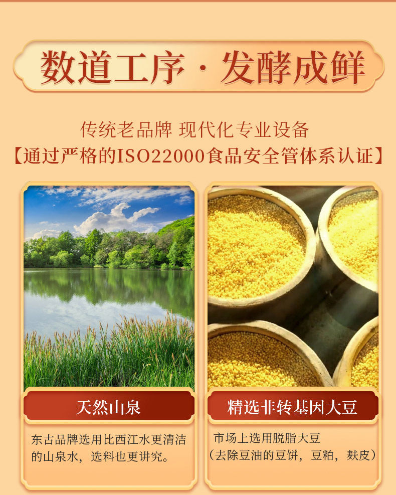 | Raw materials and ingredients | Water, Non-GMO Soybean, Edible Salt Wheat Flour, Sodium Glutamate, High Fructose Syrup, Disodium 5 '-Aromonate, Sodium Benzoate, Potassium Sorbate, Trichlorinated cane |