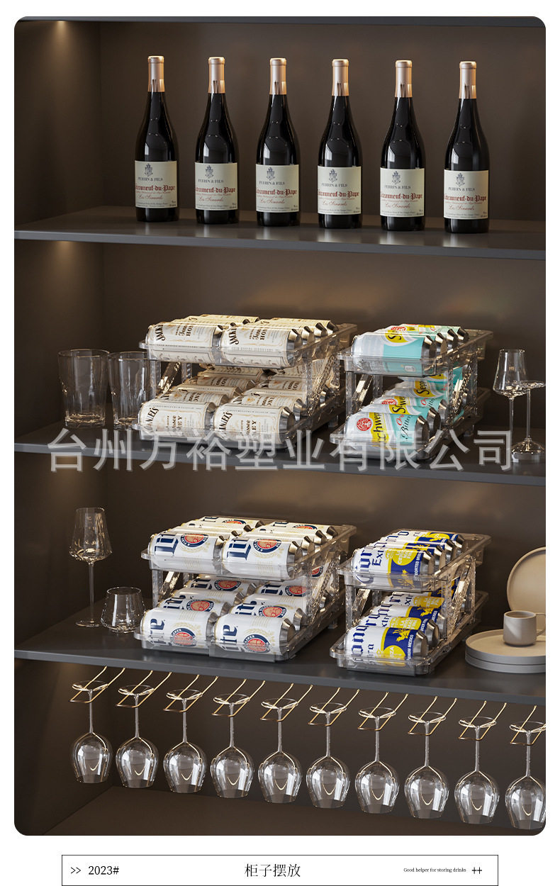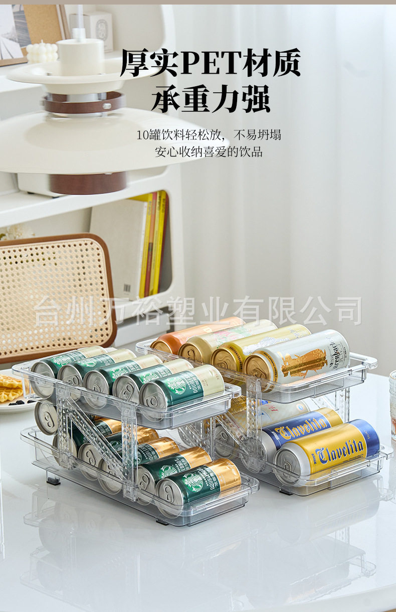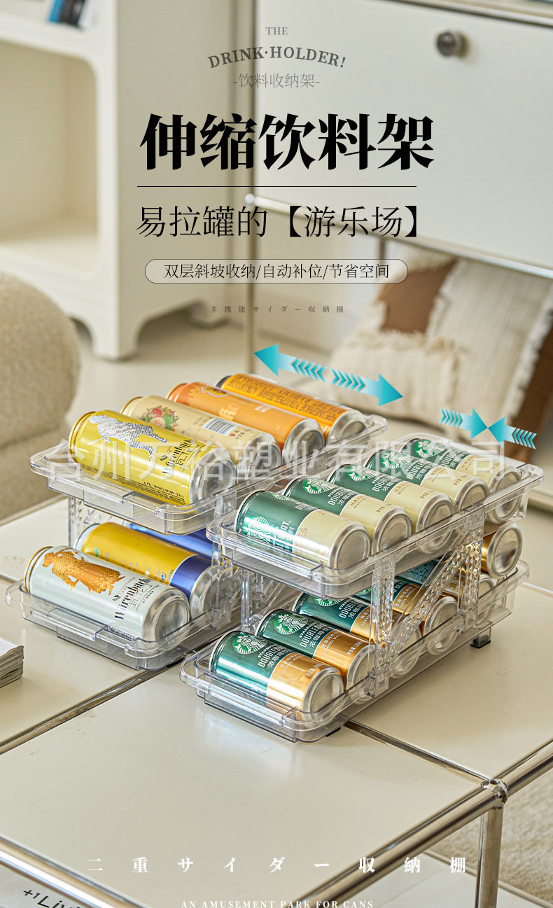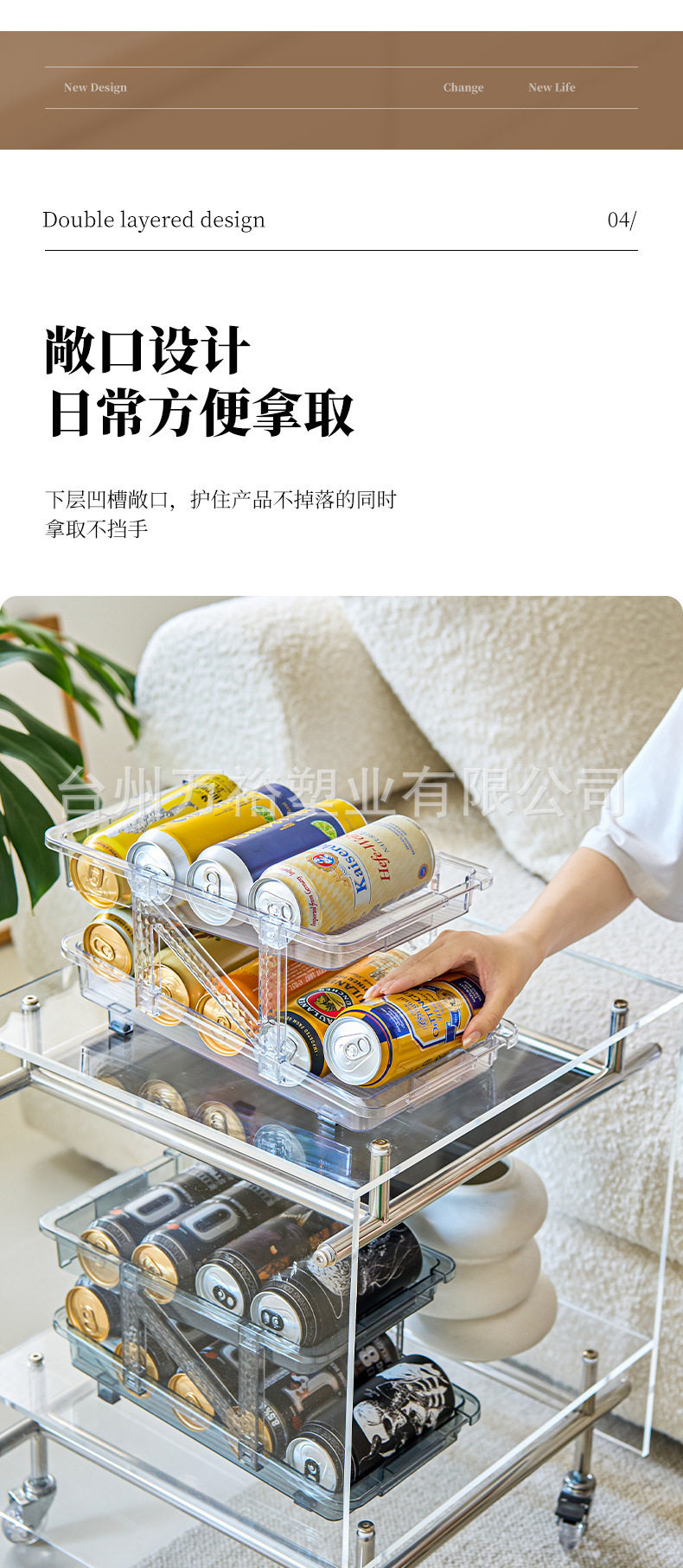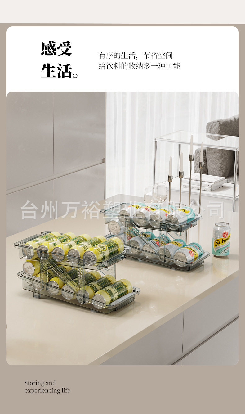 Double-layer retractable rolling beverage storage box automatic filling pop can storage rack refrigerator soda desktop rack