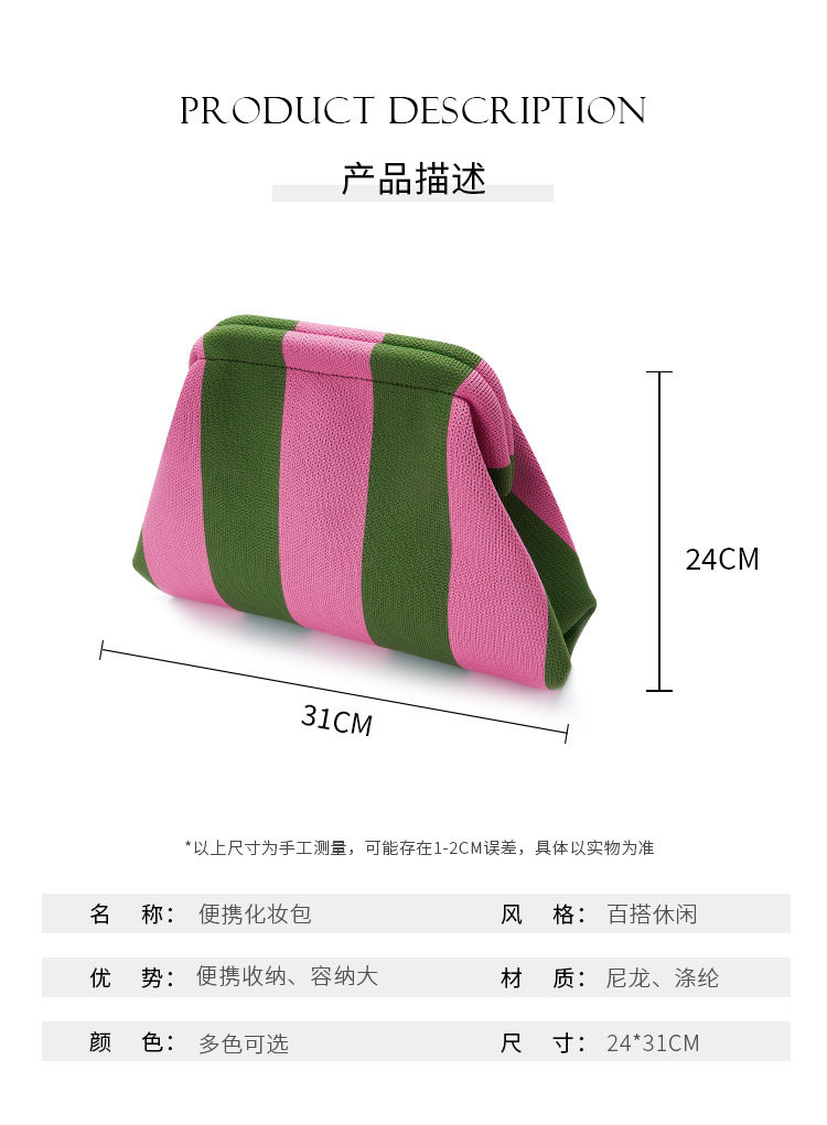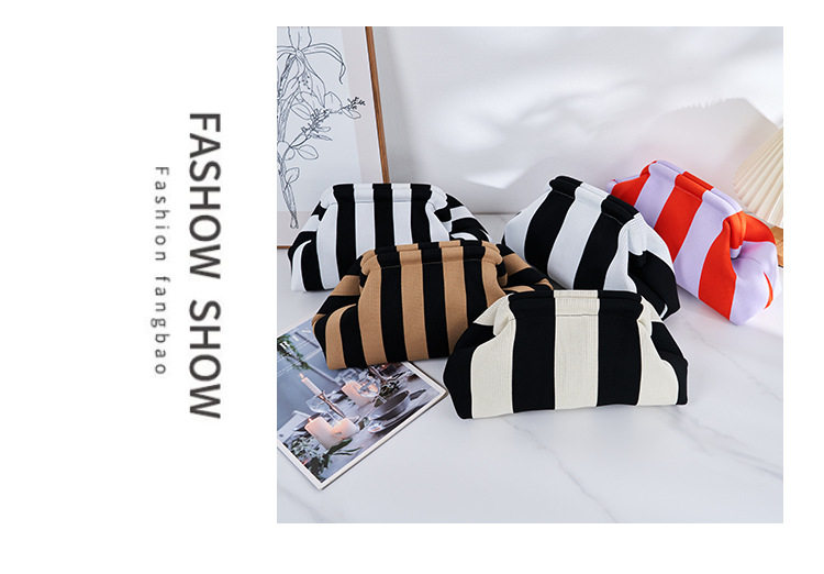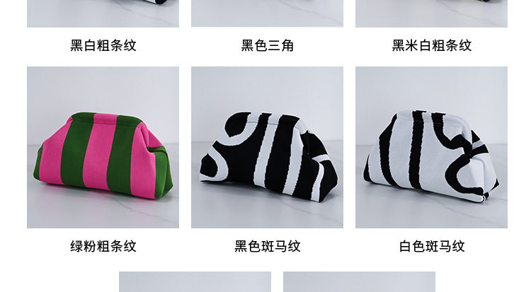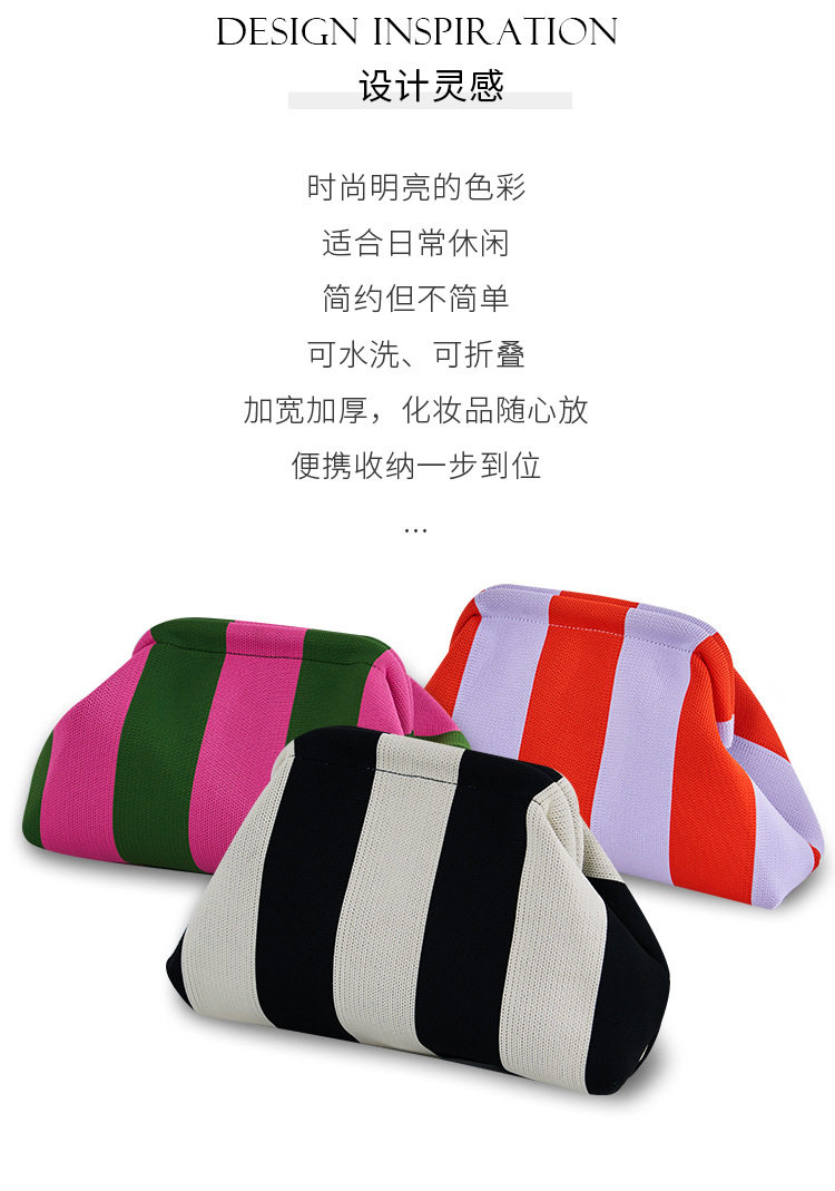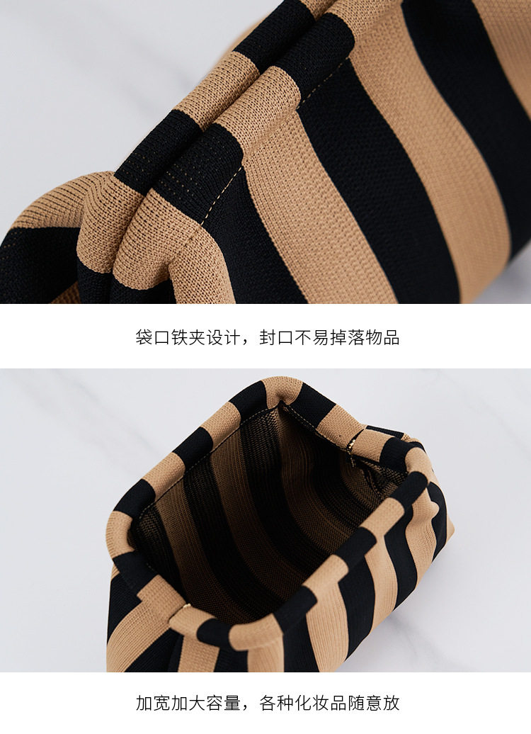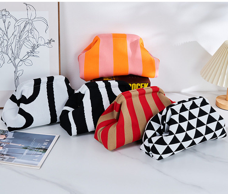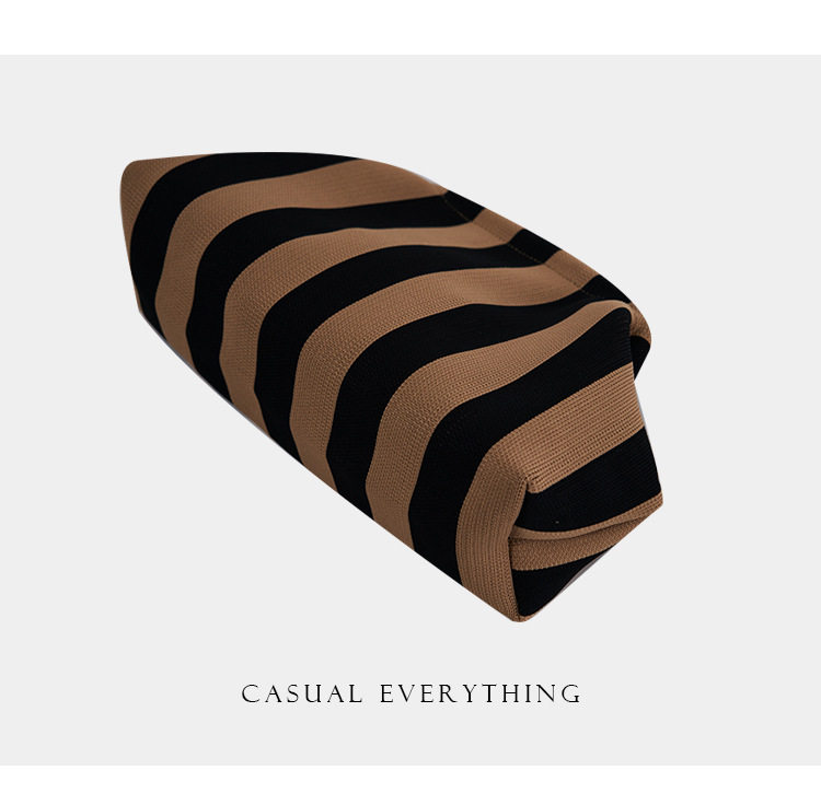 2026 Amazon Cross-Border New Knitted Handbag with Stripes and Cloud Design, Large Capacity, Versatile for Daily Use, Color-Blocking Fly-Knit Bag