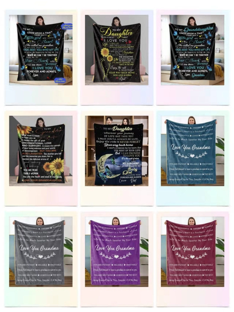 Amazon Hot Sale Envelope Printed Blanket Message Letter Air-conditioning Blanket Printed Flannel Blanket English Tapestry