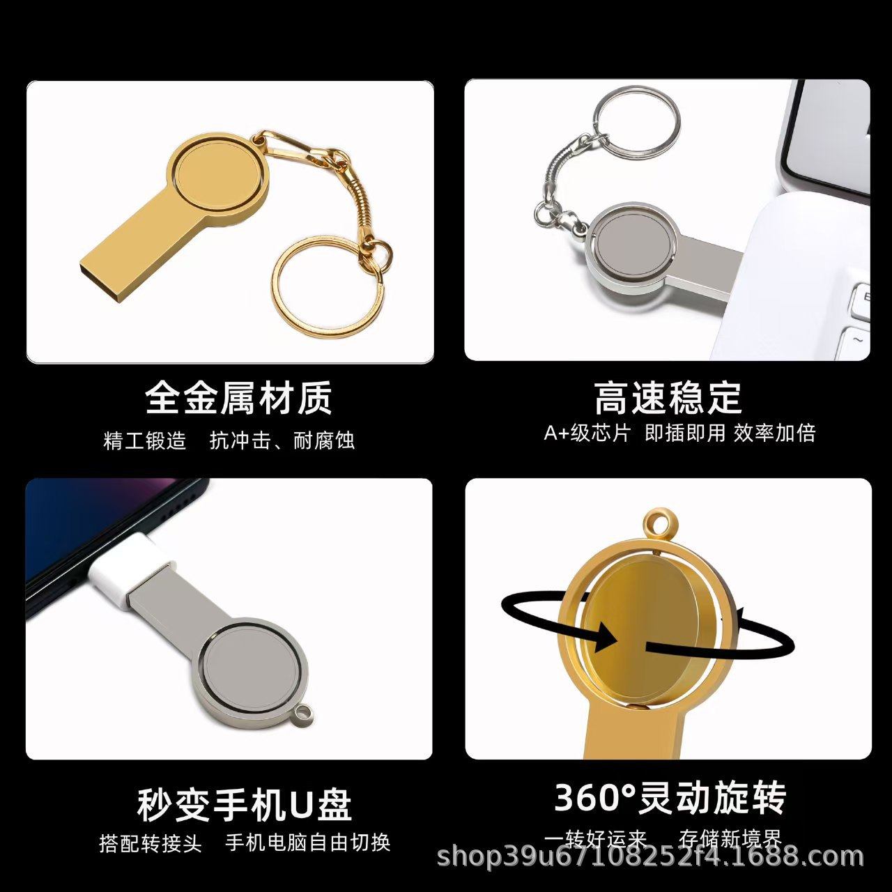 Metal USB Flash Drive Rotating Creative USB Drive 16g - Personalized Custom USB Drive 32g Exhibition Promotion 64g School Graduation 128g
