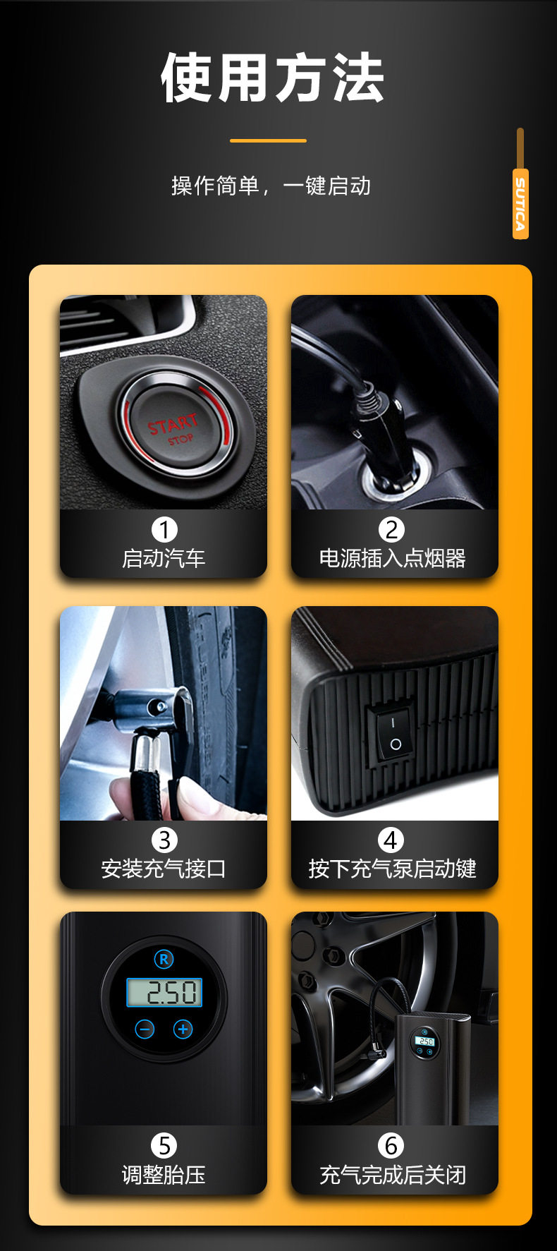 Fast hand shake sonic explosive car inflator car tire inflator 12V portable car electric inflator