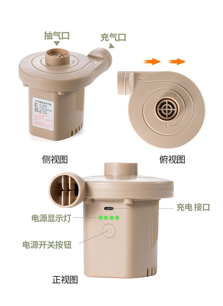 Outdoor Camping Air Cushion USB Electric Pump Children's Swimming Pool Swimming Ring Air Bucket Air Pump Inflatable Mattress Air Pump
