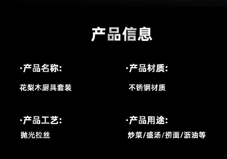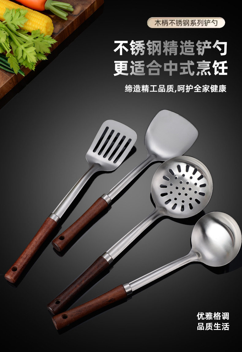 Stainless steel rosewood handle cooking spoon shovel kitchenware five pieces suit anti-scalding soup spoon spatula spoon shovel set