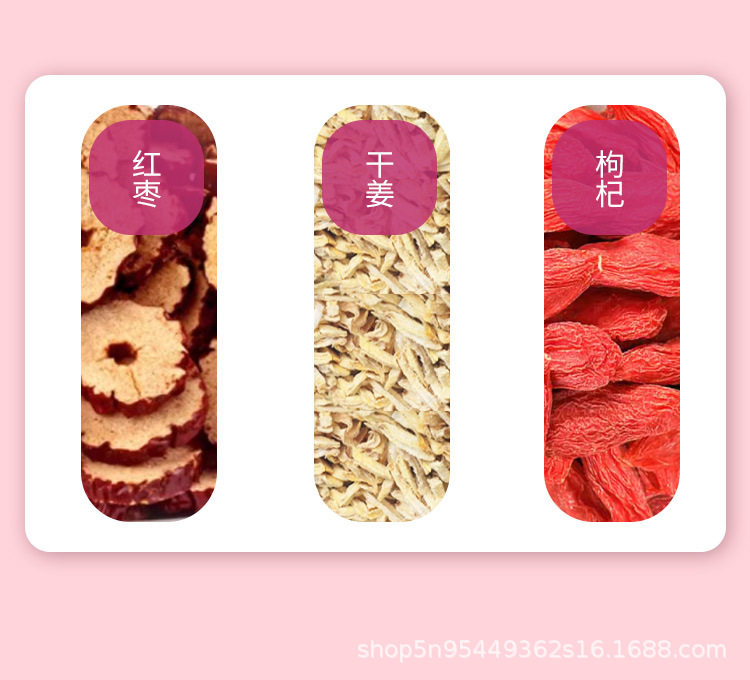 | Raw materials and ingredients | Red dates, dried ginger, wolfberry |