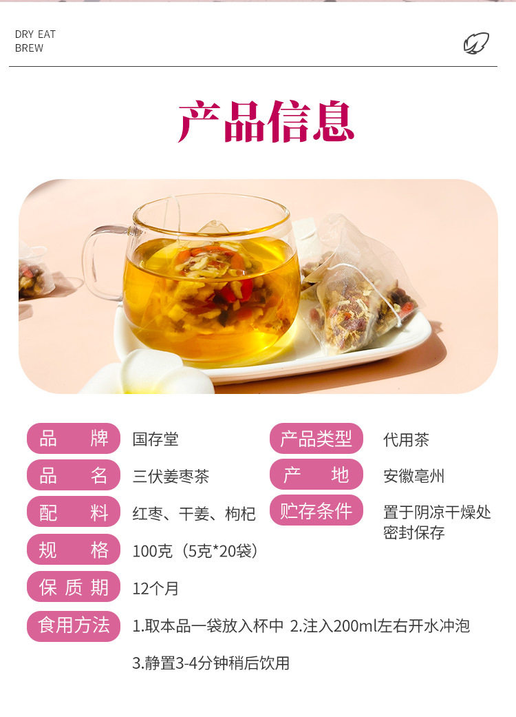 Guochuntang Sanfu Ginger Jujube Tea Sugar-free Sweat 5g * 20 Pack Red Jujube Dried Ginger Wolfberry Sanfu Day Health Tea