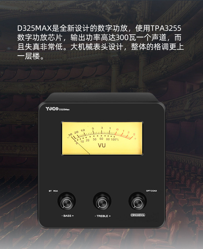D325Max High Power TPA3255 Retro Mechanical Pointer Fiber Optic Coaxial Bluetooth 5.1 Digital Power Amplifier