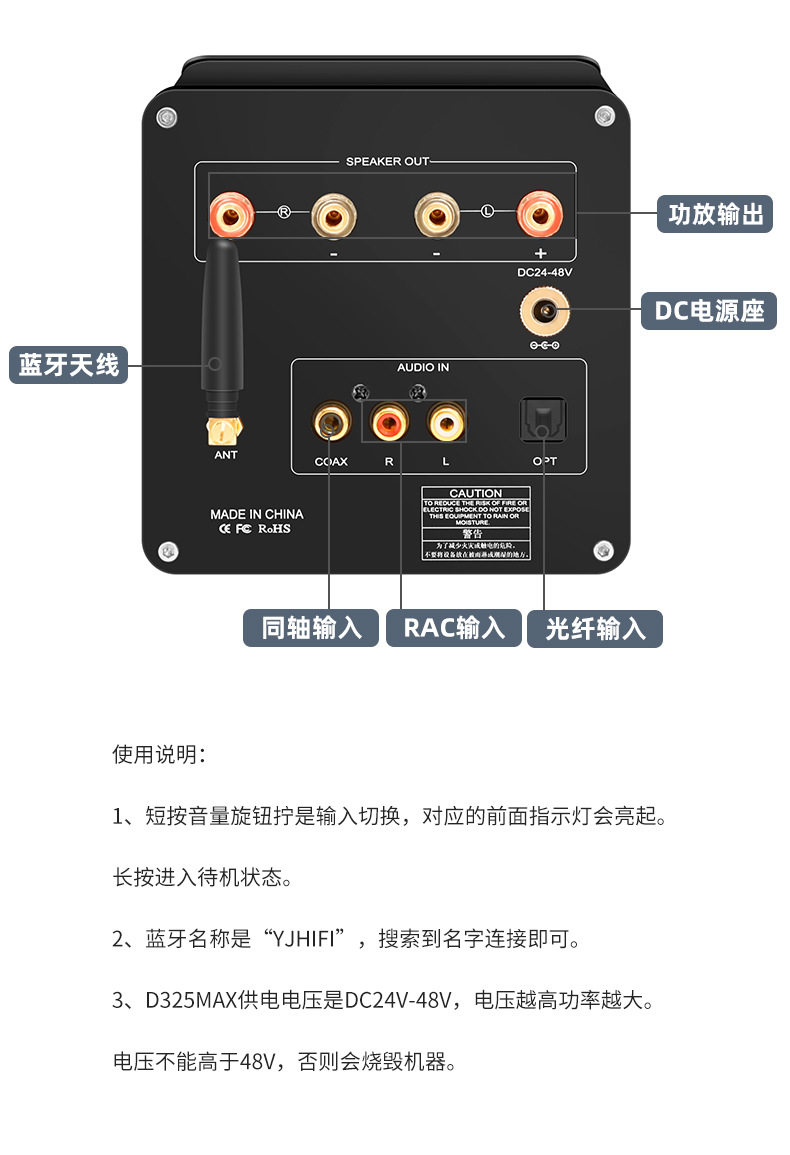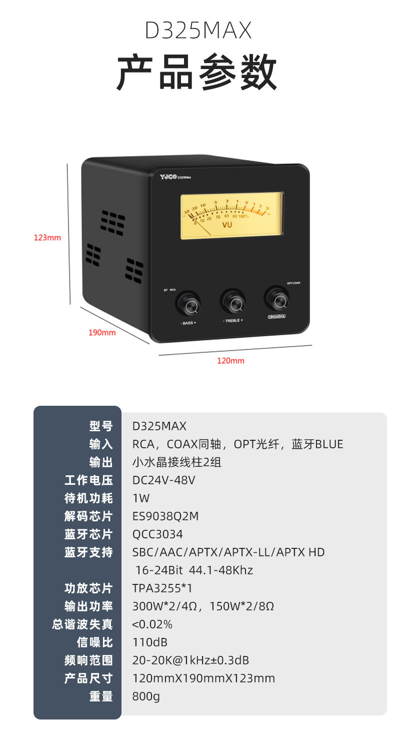 | Model | D325Max High Power TPA3255 Retro Mechanical Pointer Fiber Optic Coaxial Bluetooth 5.1 Digital Power Amplifier |