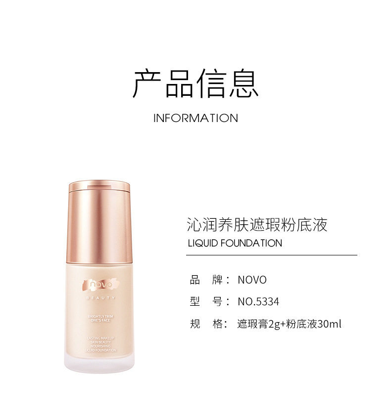 NOVO nourishing skin concealer foundation liquid lasting makeup light moisturizing waterproof sweat foundation cream BB cream