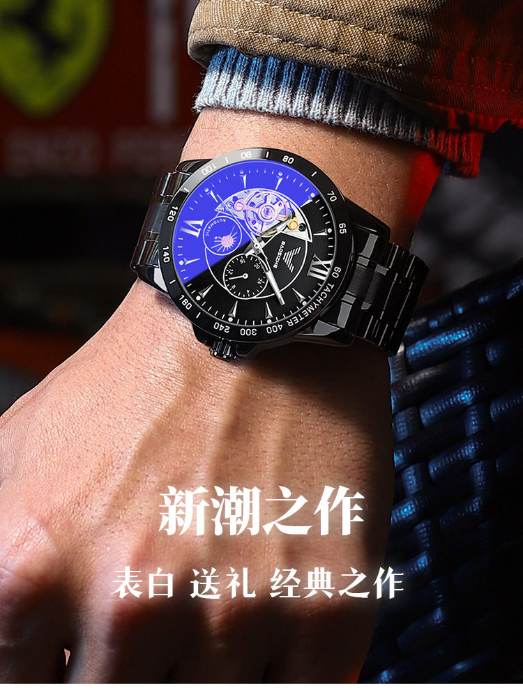 2025 New Men's Mechanical Watch, High-End Fully Automatic Hollow-Out Genuine Student Men's Watch, Qixi Festival Gift for Boyfriend