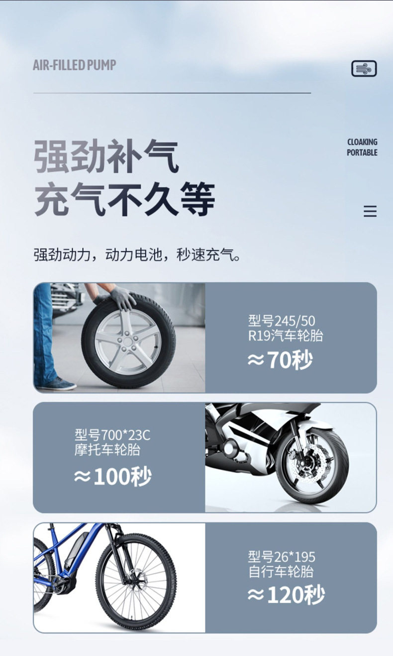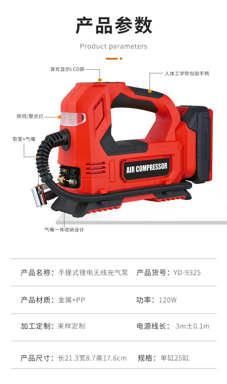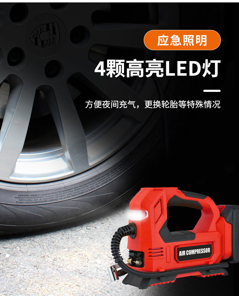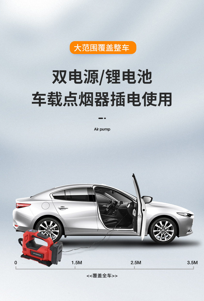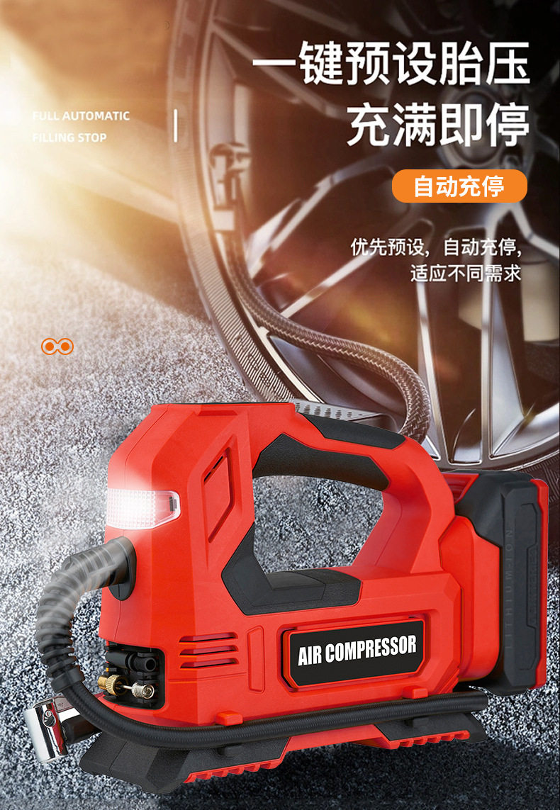 Car charging air pump car 21v electric portable light tire inflation pump dual power supply