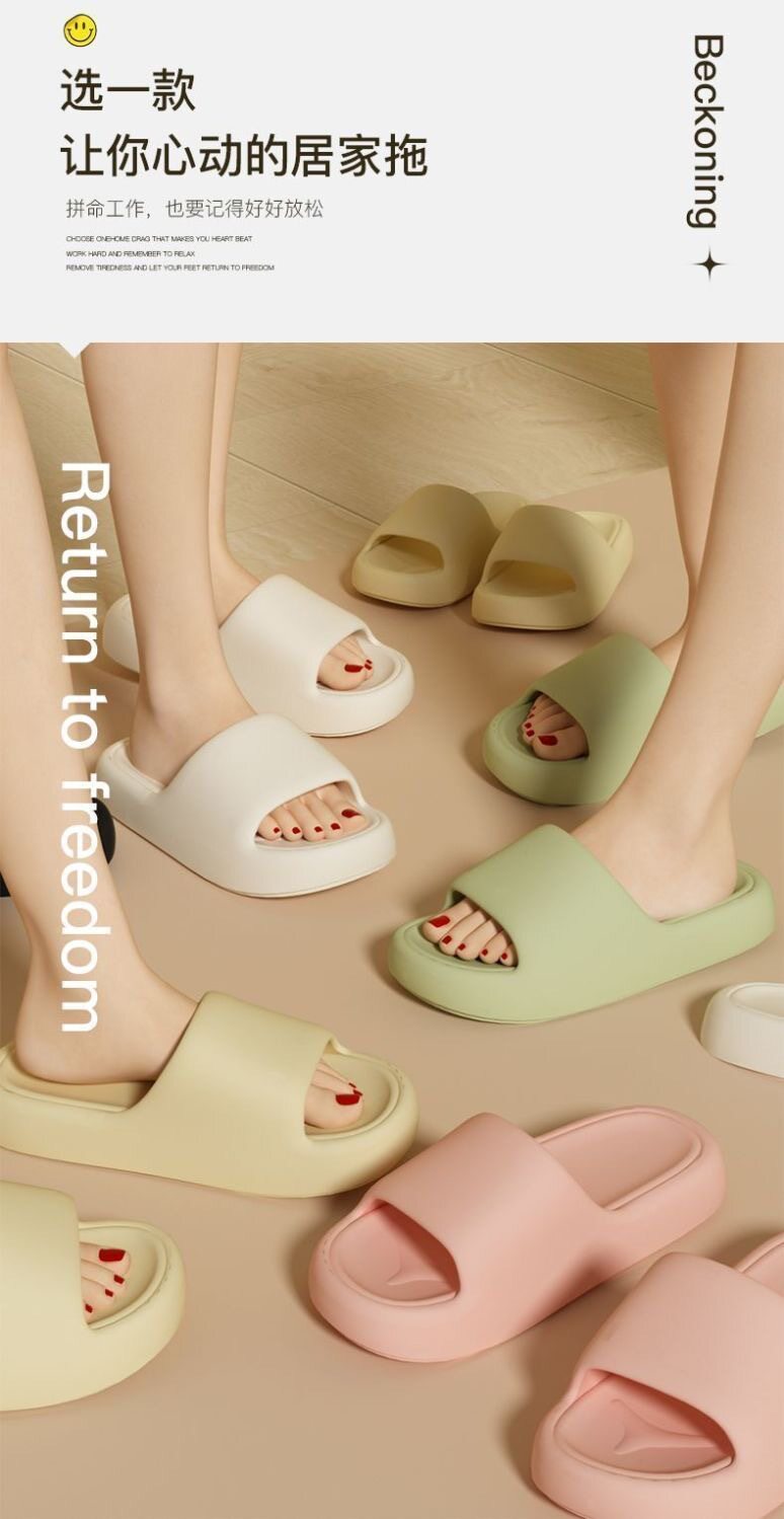 Popular Red Fortune Slippers for Women, Suitable for Outdoor Wear in Summer, Indoor Home Use, Thick-Soled Bathroom Non-Slip Couple Slippers for Men