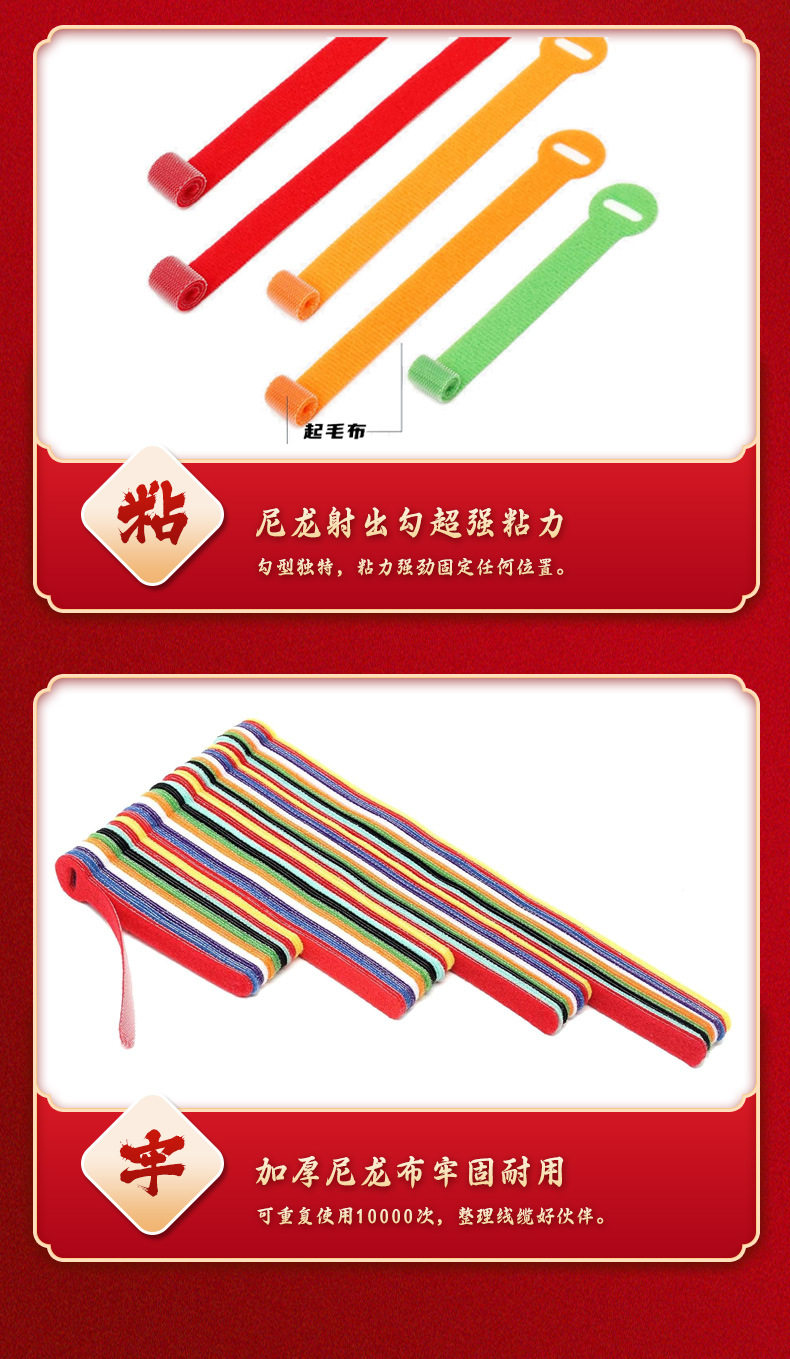 Data Cable Tie Round Head Color Back-to-back Self-adhesive Tie with Printable LOGO Storage Nylon Velcro Tie