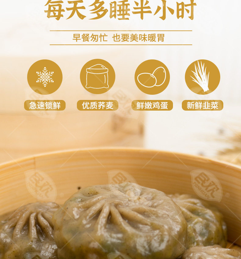 Buckwheat Crystal Vermicelli Thin-skinned Buns Special Breakfast Semi-finished Instant Lazy Food Frozen Small Cage Buns with Vegetable Stuffing