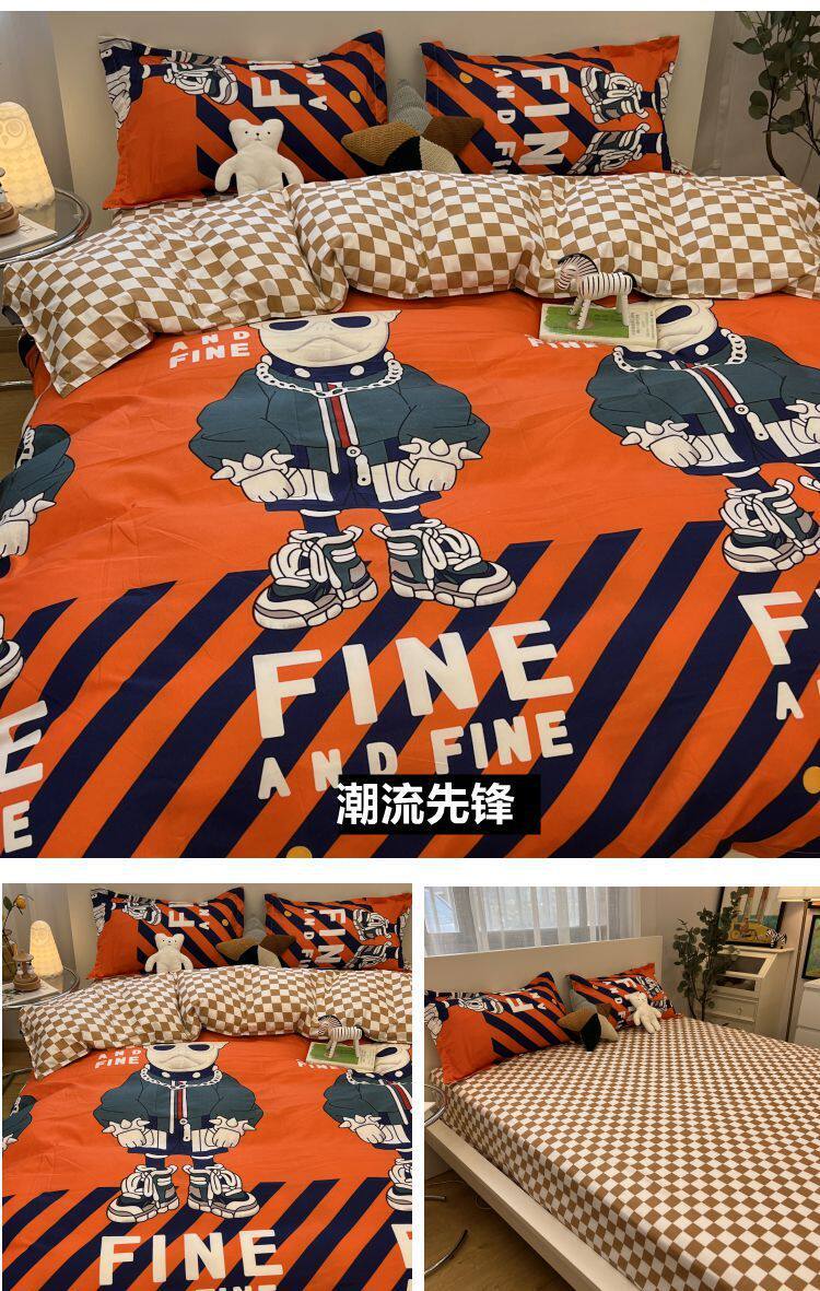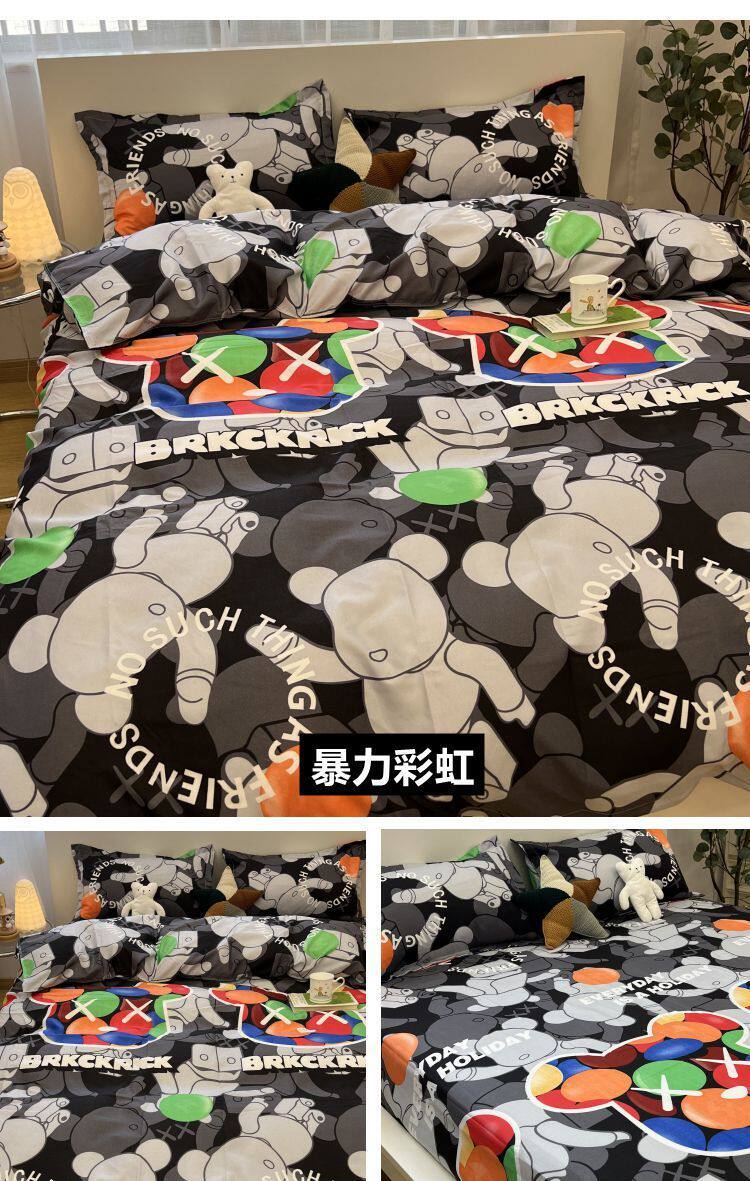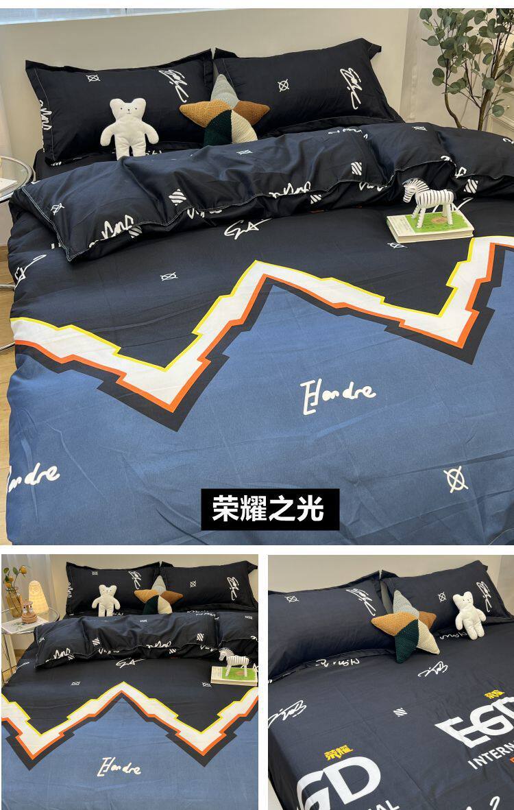 | Dimensions | 1.2 m three-piece set (dormitory bed),1.5 m four-piece set (quilt cover 150*200),1.8 m four-piece set (quilt cover 180*220),2.0 m four-piece set (quilt cover 200*230),2.2 m four-piece set (quilt cover 220*240) |