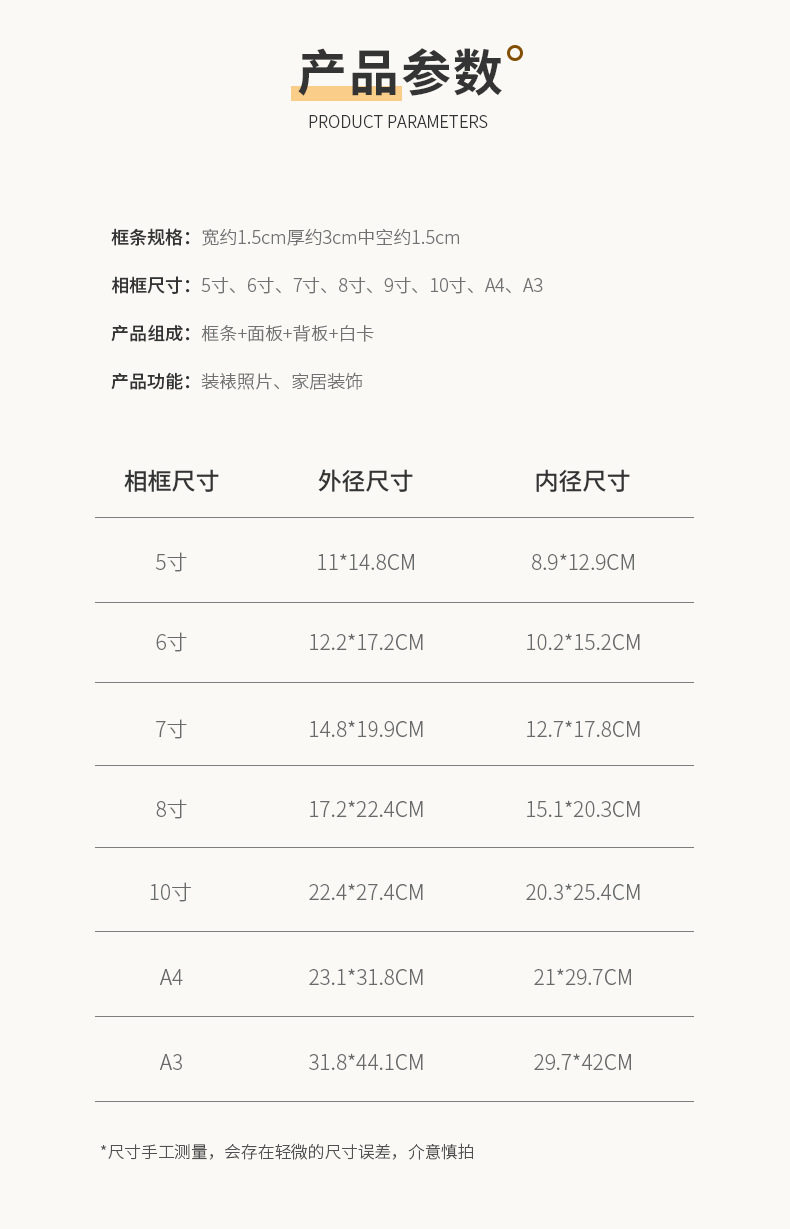 | Frame size | Square 4inch [inner diameter 10*10cm],5inch [inner diameter 9*12.9cm],6inch [inner diameter 10.2*15.2cm],7inch [inner diameter 12.7*17.8cm],8inch [inner diameter 15.2*20.3cm],10inch [inner diameter 20.3*25.4cm],A4 [inner diameter 21*29.7cm],A3 [inner diameter 29.7*42cm] |