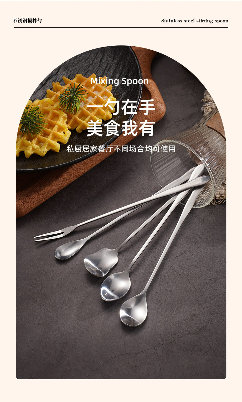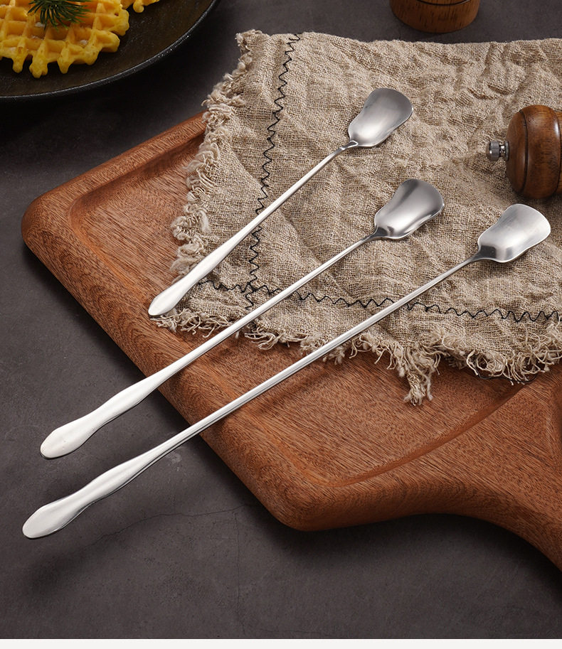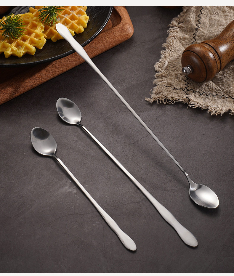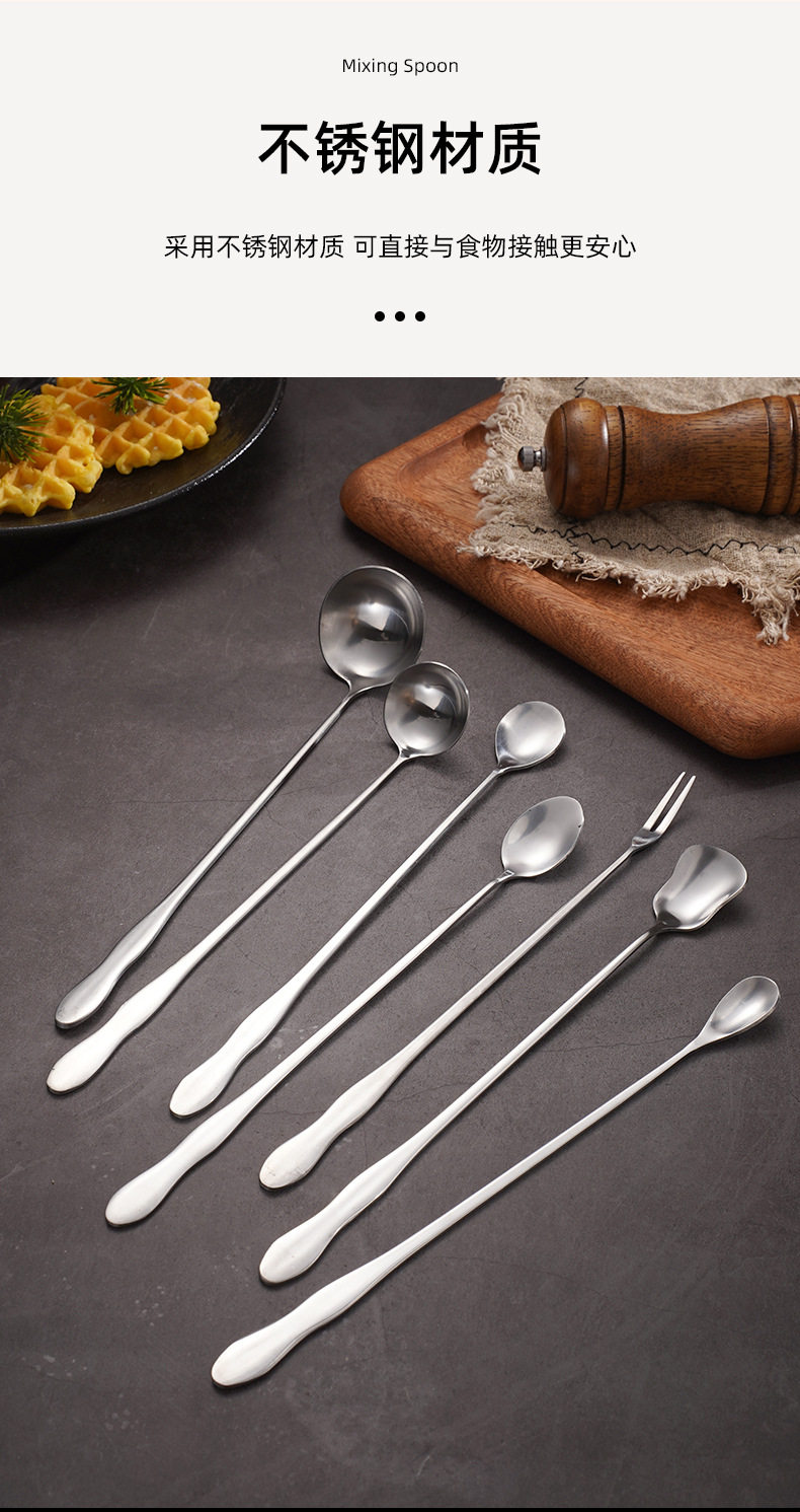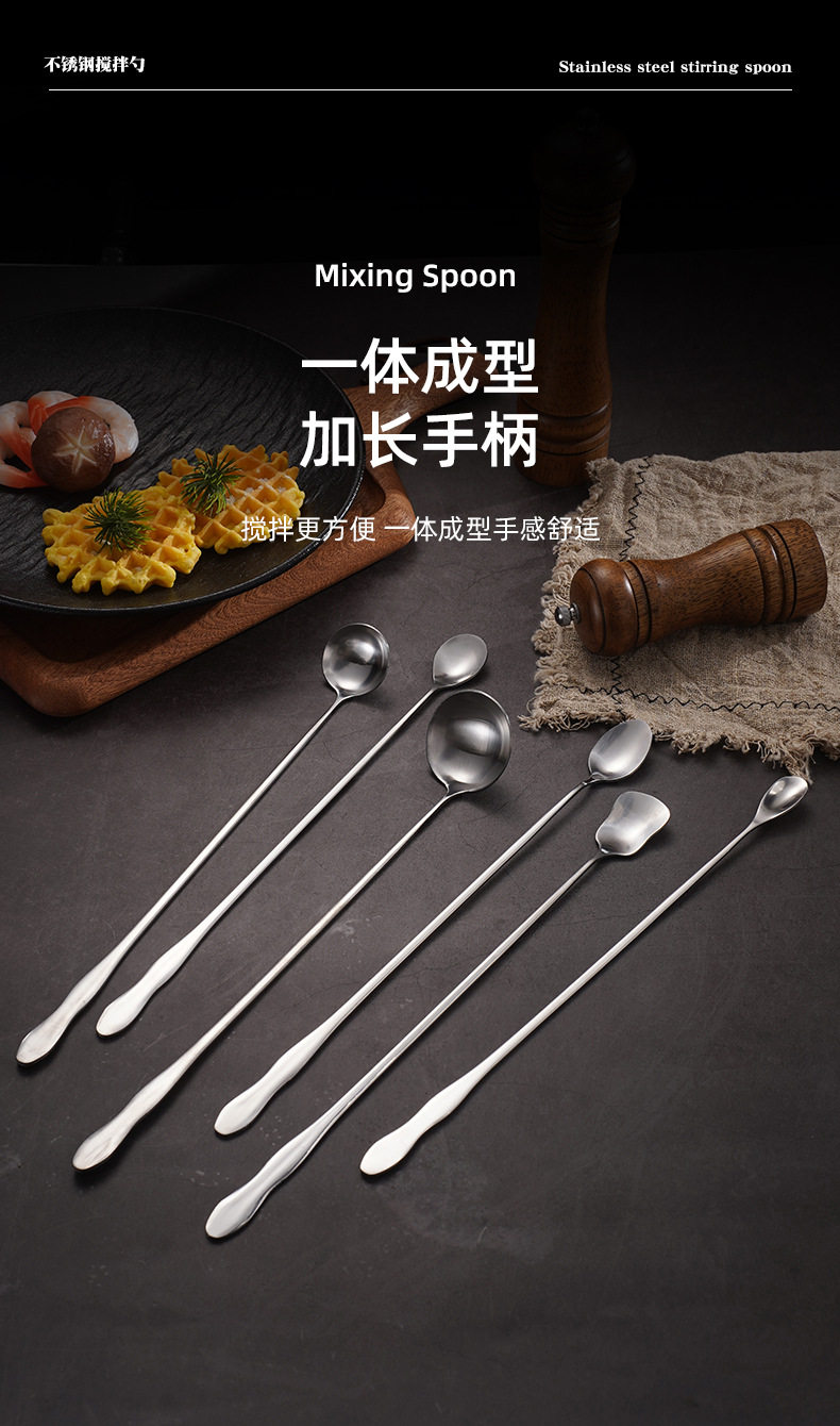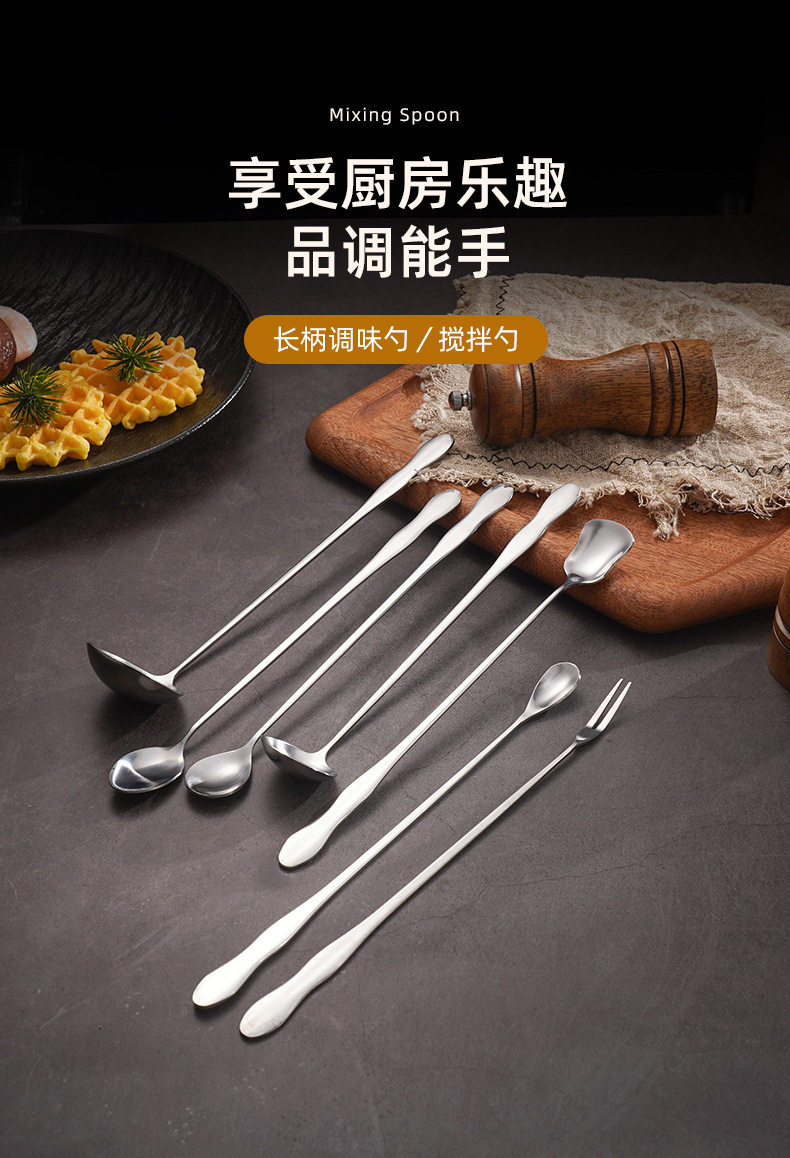 Stainless Steel Long-Handled Gourd-Shaped Spoon, 32cm Extended Pointed Ice Spoon, Mixing Seasoning Spoon, Bar Spoon, Oil Spoon, Condiment Dessert Spoon