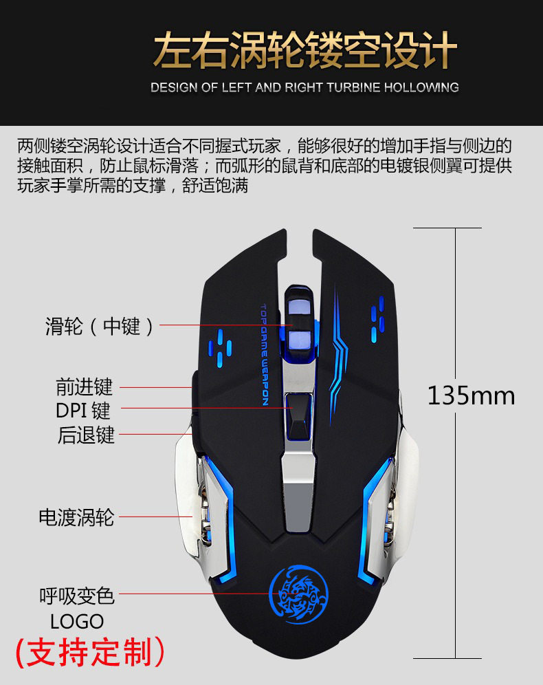 Cross-Border New Wired Gaming Mouse Wireless Bluetooth Charging Laptop USB Computer Tablet Business Office