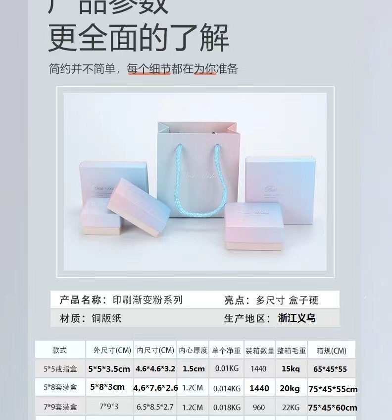 Pearlescent gradient pink blue jewelry storage box ring earrings necklace bracelet box jewelry packaging box factory wholesale