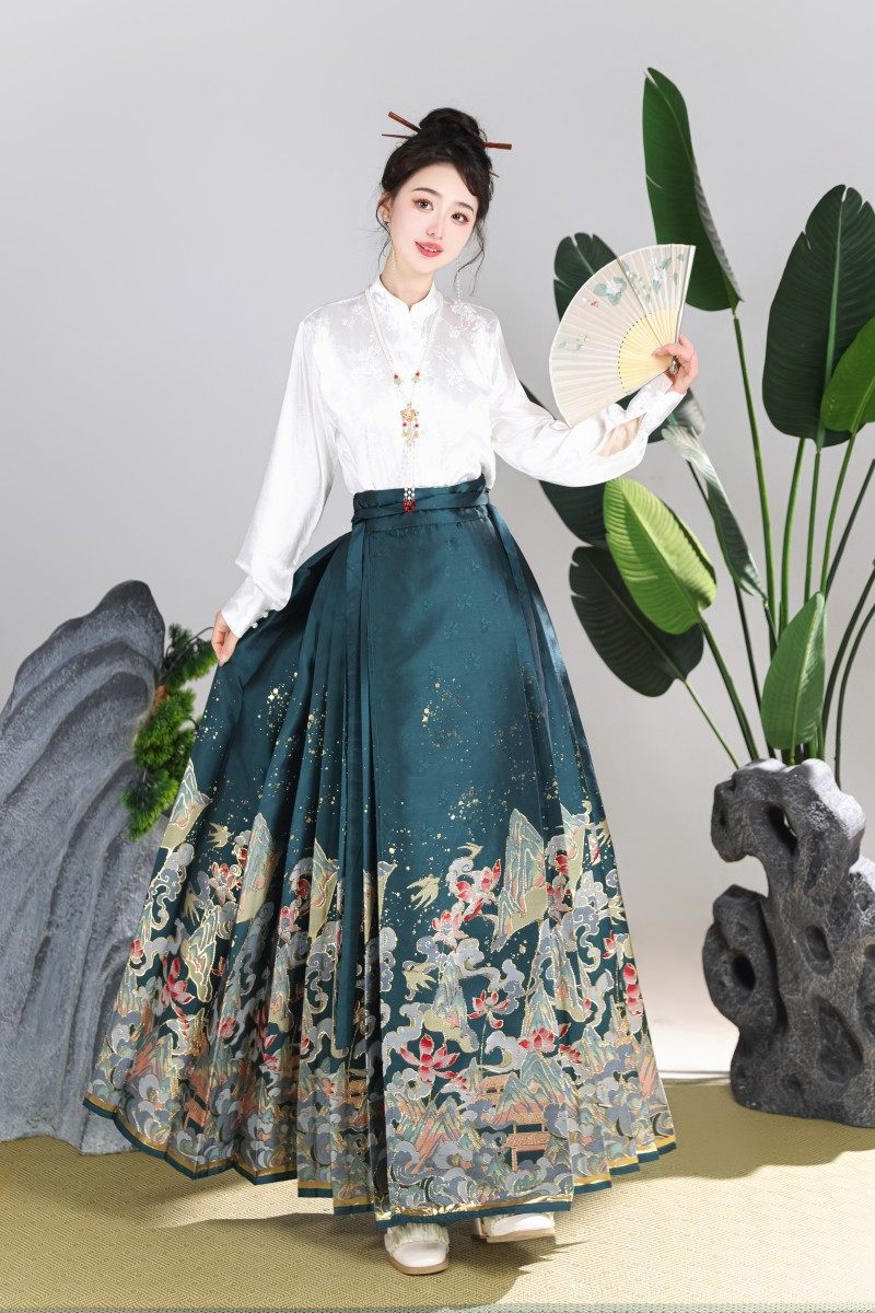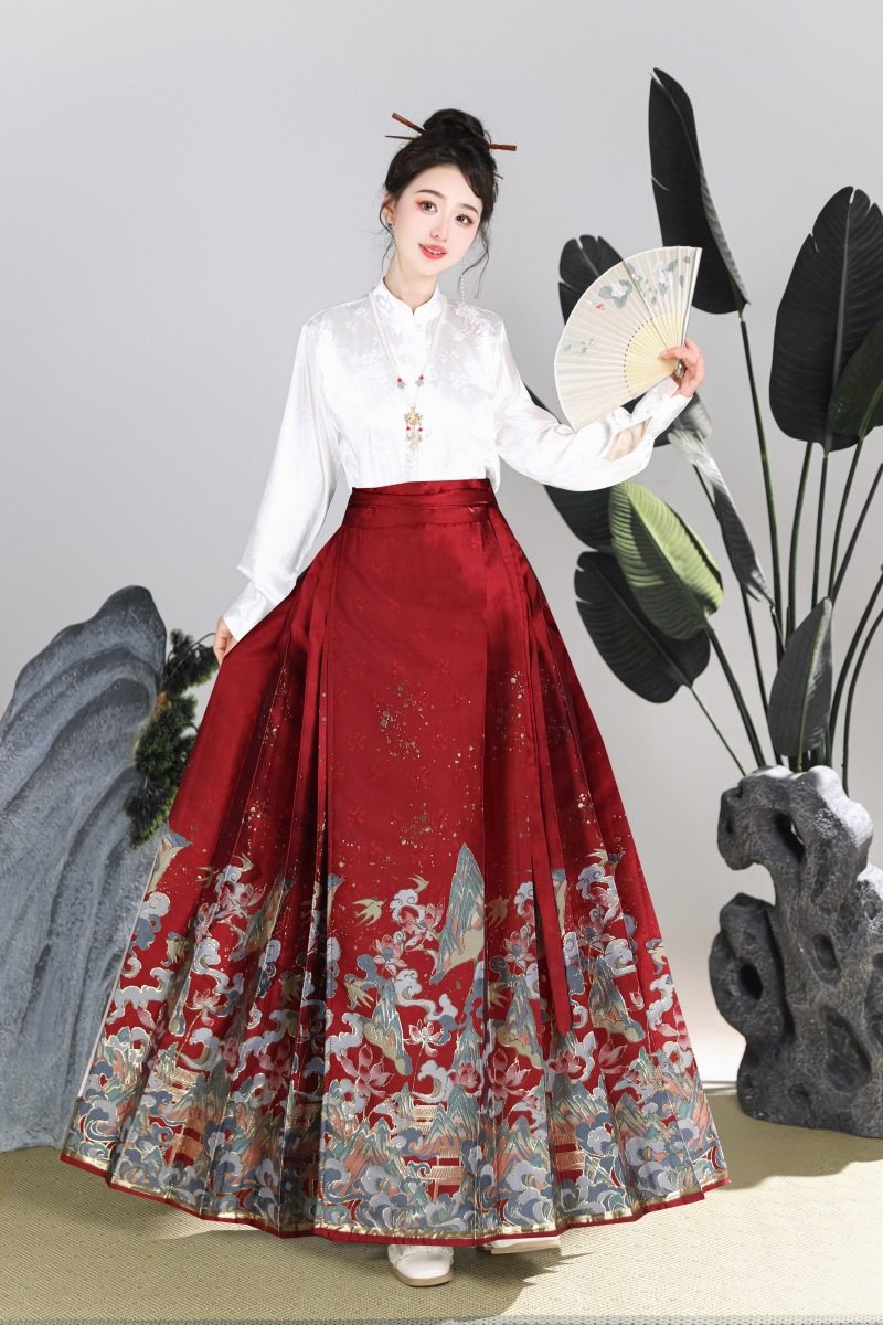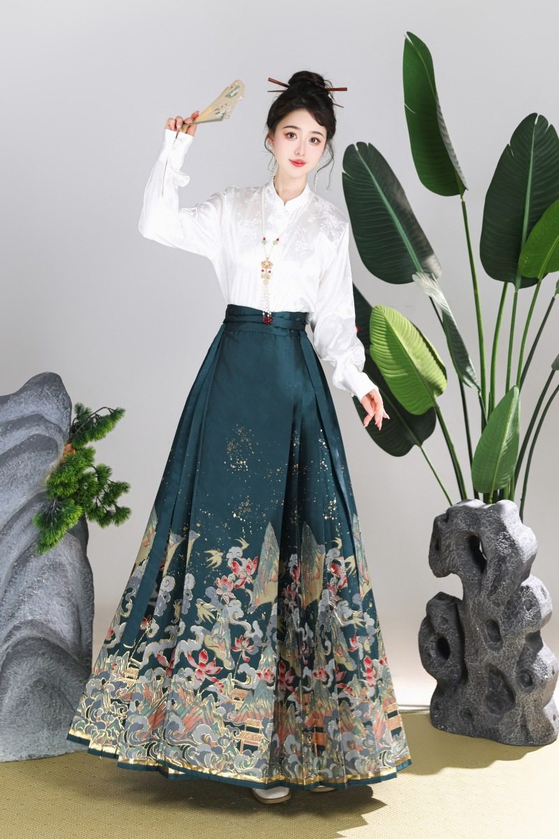 New Chinese Style Horse Face Dress Hanfu 2024 New Women's Clothing Adult Print Elegant Slimming National Style Commuter Daily Matching