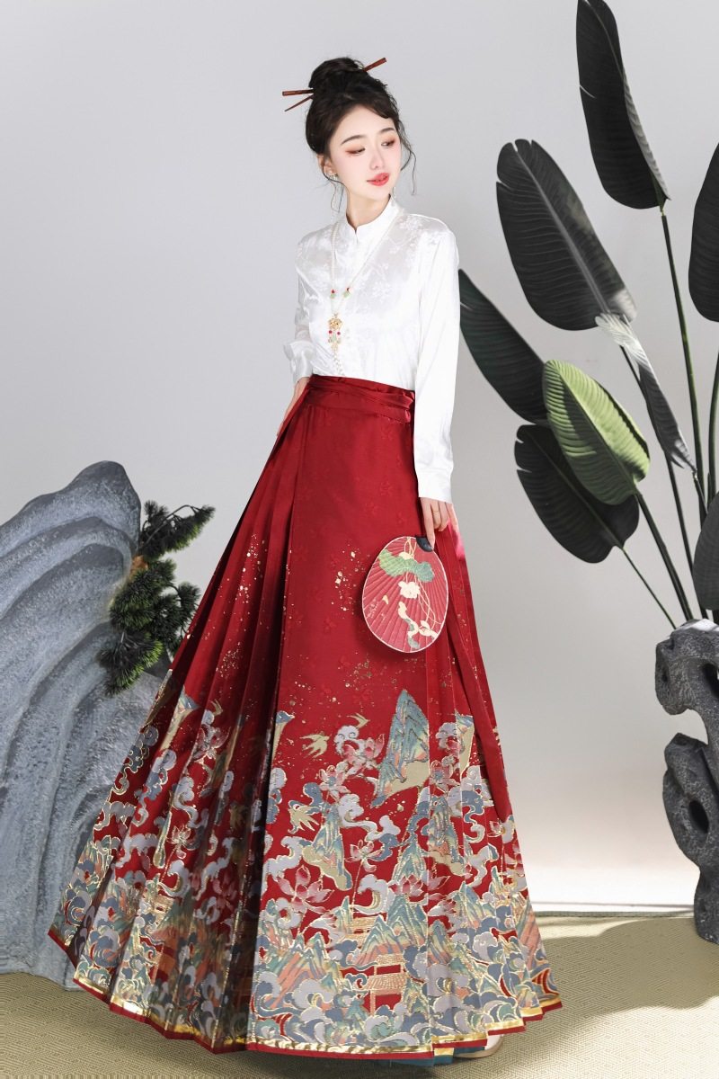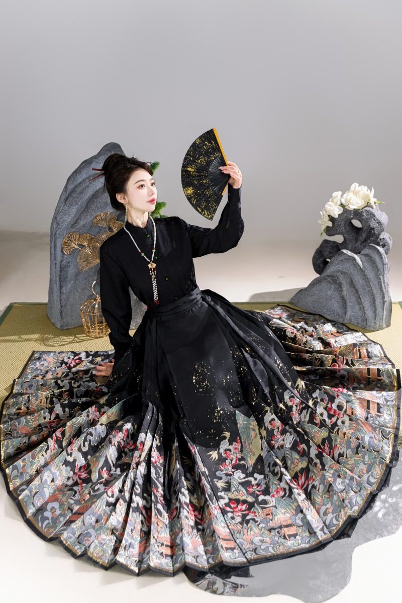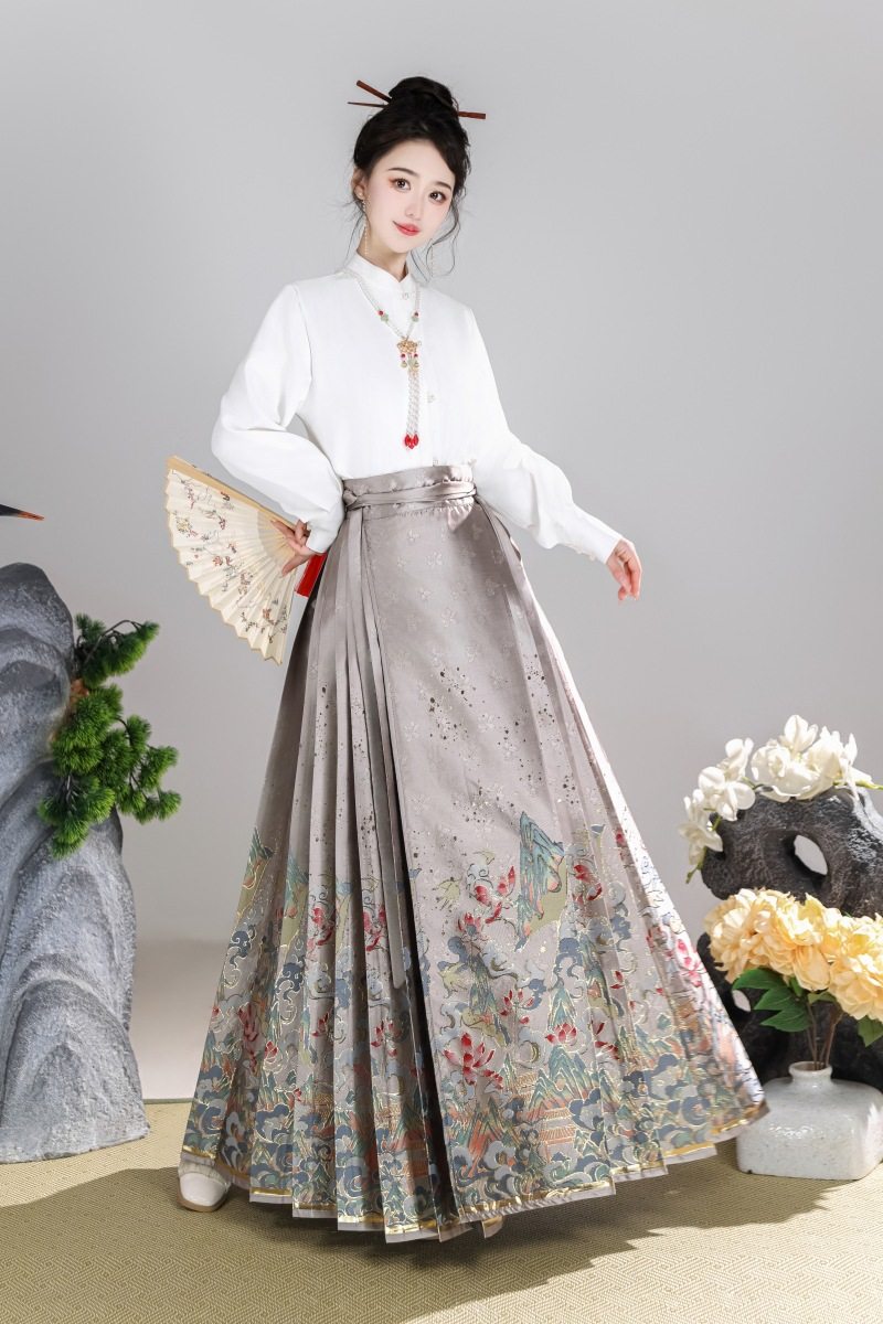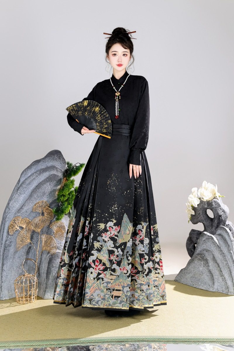New Chinese Style Horse Face Dress Hanfu 2024 New Women's Clothing Adult Print Elegant Slimming National Style Commuter Daily Matching