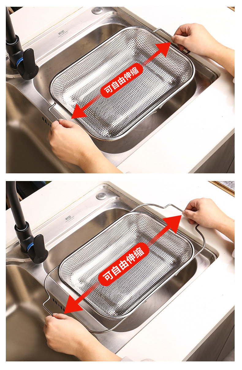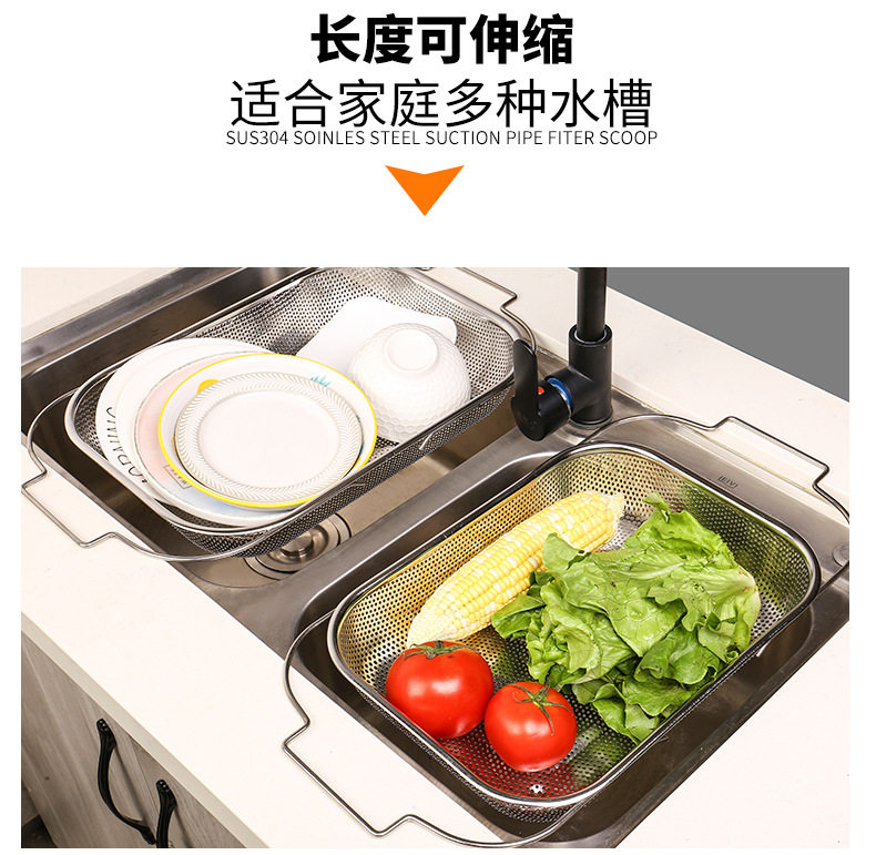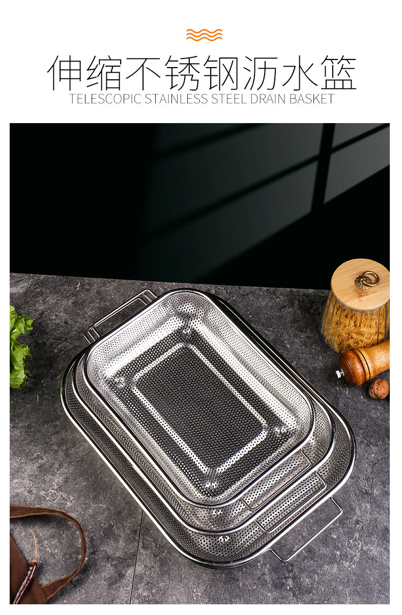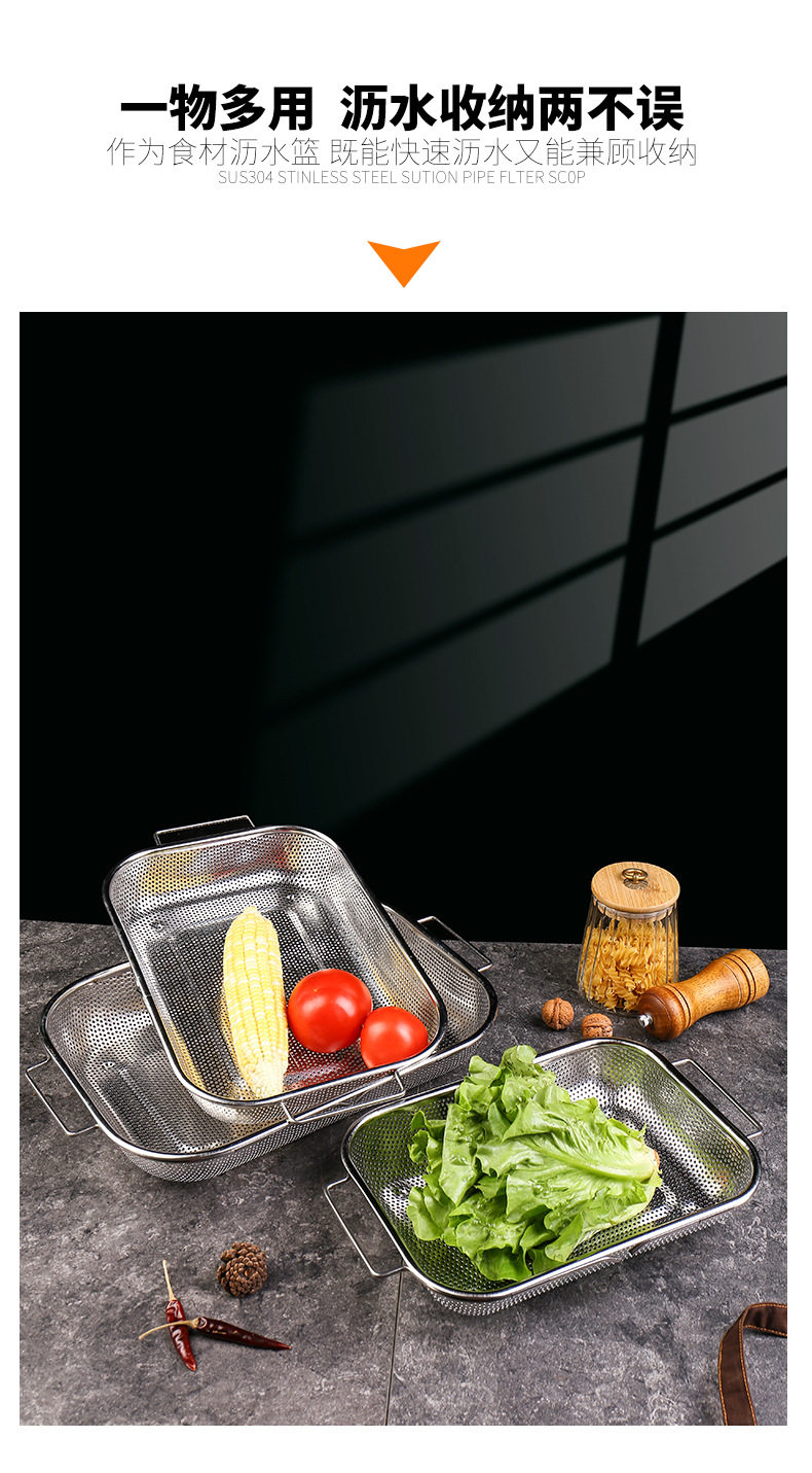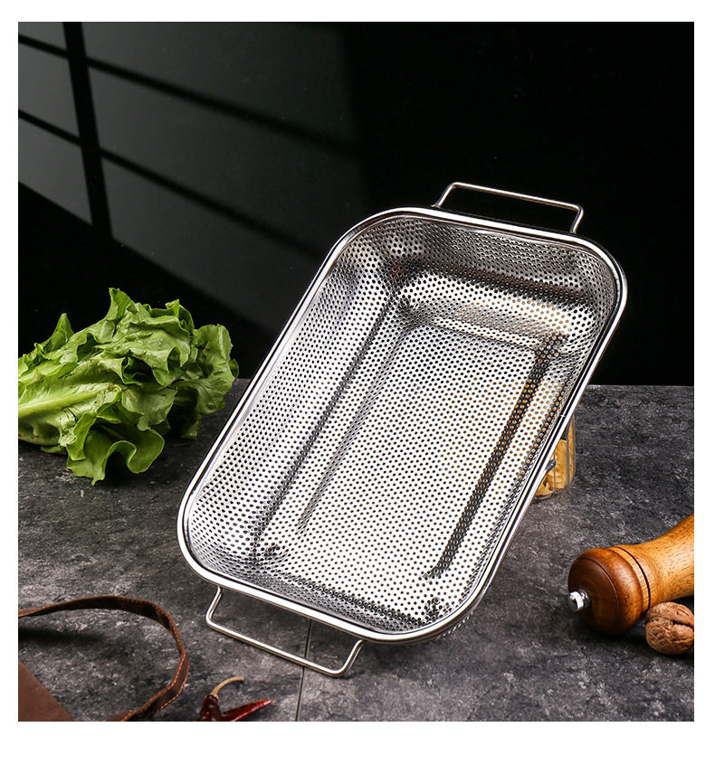 Stainless steel dense hole multi-purpose basket dense hole basket multi-purpose drain basket fruit basket binaural rice sieve rice washing basin telescopic basin