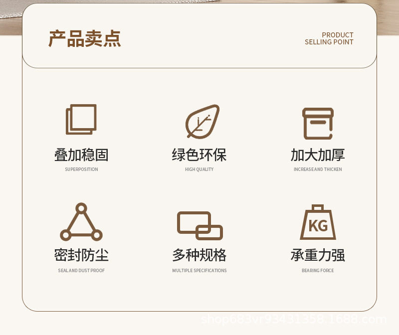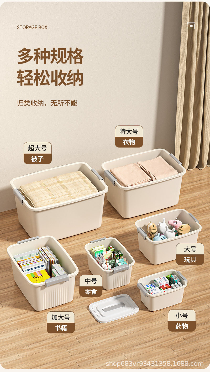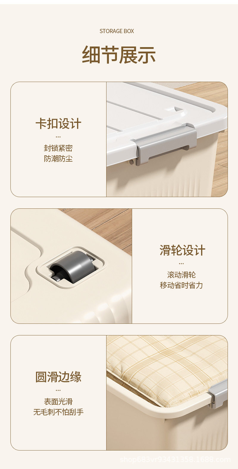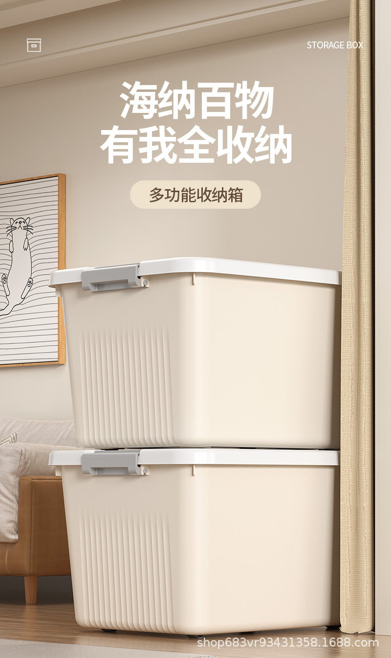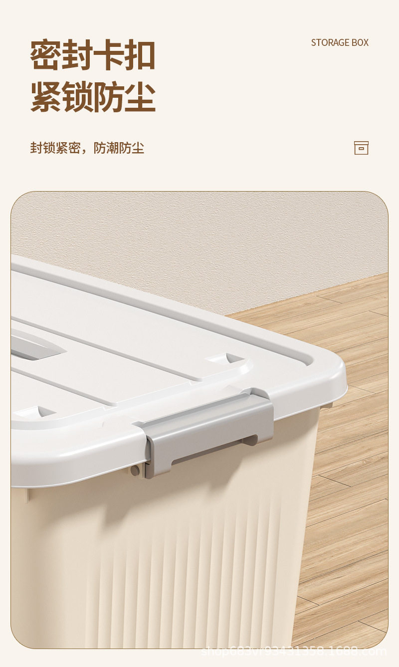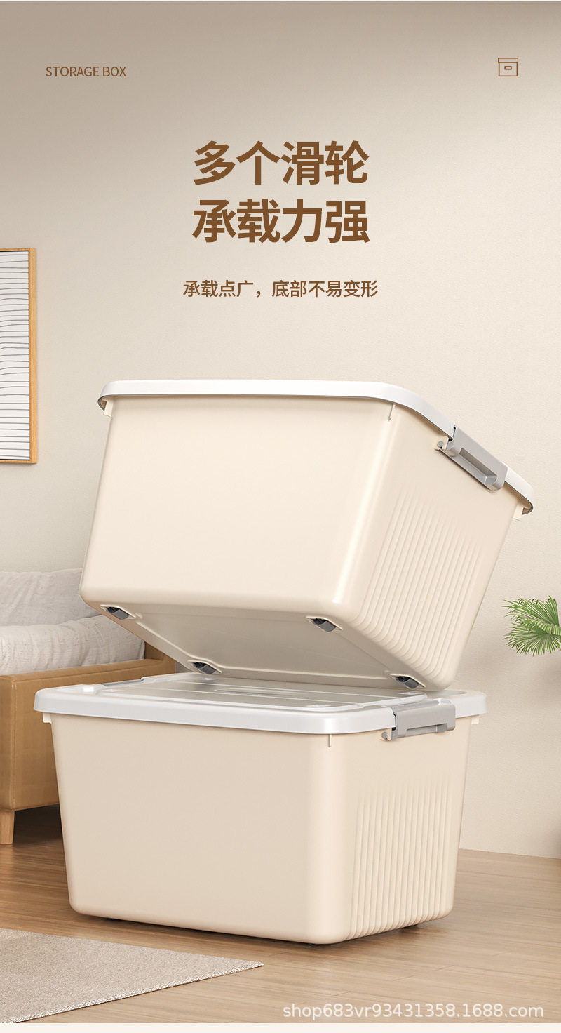 | Product introduction | Rolling and movable, large capacity, moisture and dustproof, strong load-bearing capacity, eco-friendly material / with lid and handle / cream |
