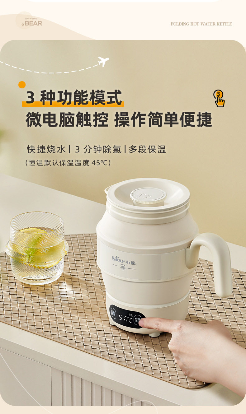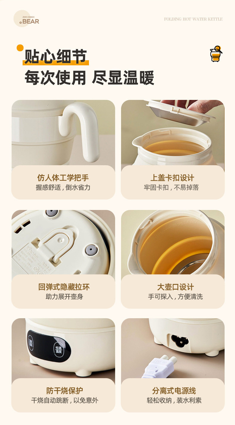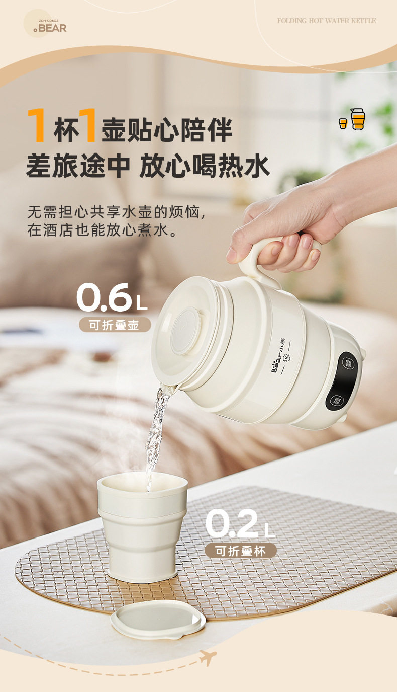 Bear Portable Kettle ZDH-C06G3 Electric Kettle Folding Kettle Mini Boating Water Cup for Traveling Home Use